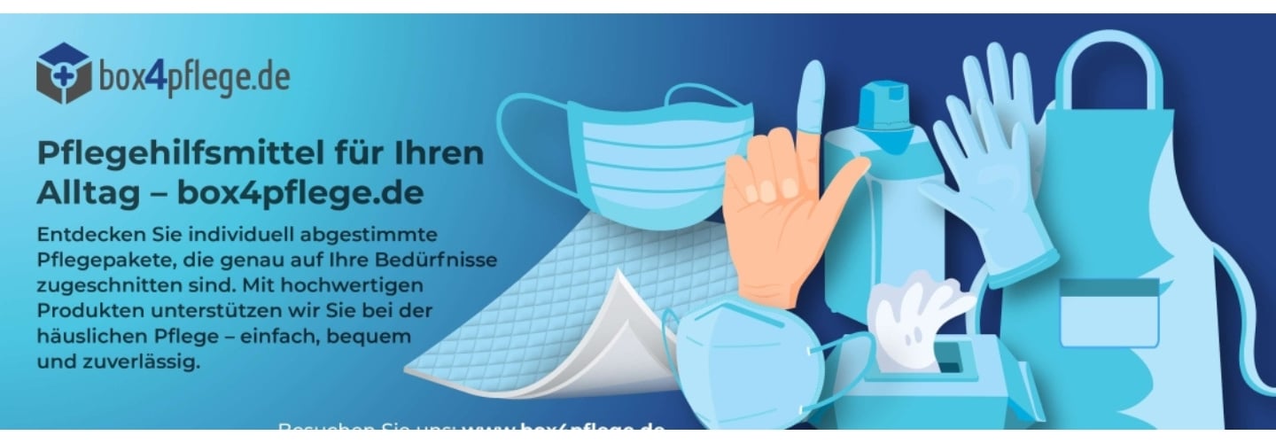 Pflegebedürftige mit Pflegegrad 1–5 erhalten monatlich individuell bestückte Pflegeboxen – Handschuhe, Masken, Desinfektion u.v.m. Box4pflege.de übernimmt Antrag, Genehmigung & Abrechnung mit der Pflegekasse sowie die direkte Lieferung.