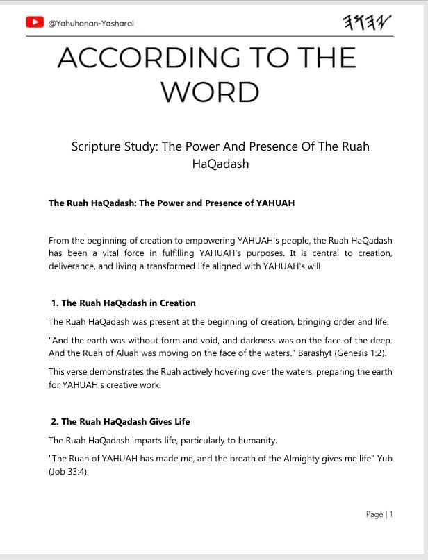 According to the Word- Scripture Study: The Power and Presence of the Ruah HaQadash