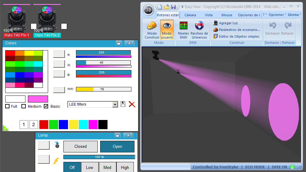 Esta Librería SSL2 está optimizada para trabajar con Magic 3d Easy View. Es decir para ver una representación 3D de las secuencias que estemos realizando con Freestyler, QLC+ o cualquier otro soft que se conecte con Magic 3d.