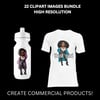 22 Transparent PNGs Commercial Use | Black Women | Stylish Black Girl Clipart Bundle | Chibi | Pre-Cropped Digital Stickers | High Res