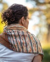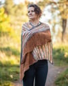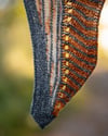 This shawl is knitted from side to side and bottom-up with two different sections. It is shaped with increases and decreases on the lower edge of the shawl and short-rows to grow the shawl into a triangle.