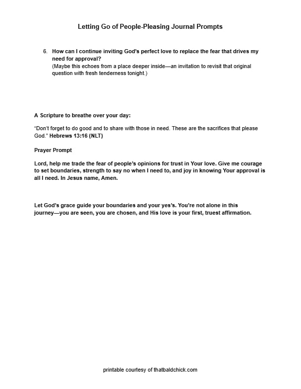 Letting Go of People Pleasing Journal Prompts