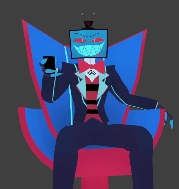 Behold, Vox, the tech demon! He's snide, crafty, and definitely not into any radio demons!