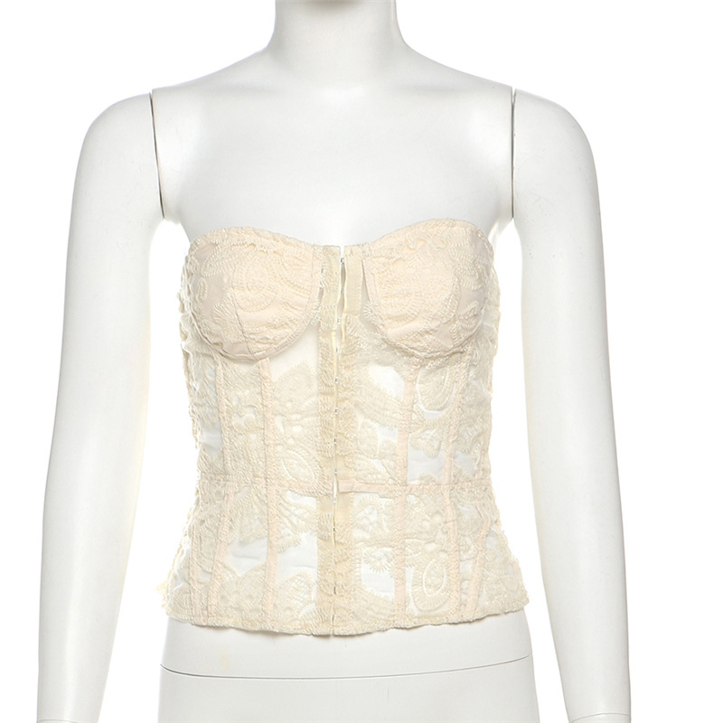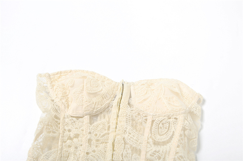 French vintage court coquette style light apricot lace corset bustier bandeau