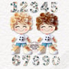 Paper quill effect dolls, 2 girls, 2 boys, blonde, brunette. Numbers 1-0 in 2 colours. 2 backgrounds included. 26 PNG files. Sublimation, DTF etc