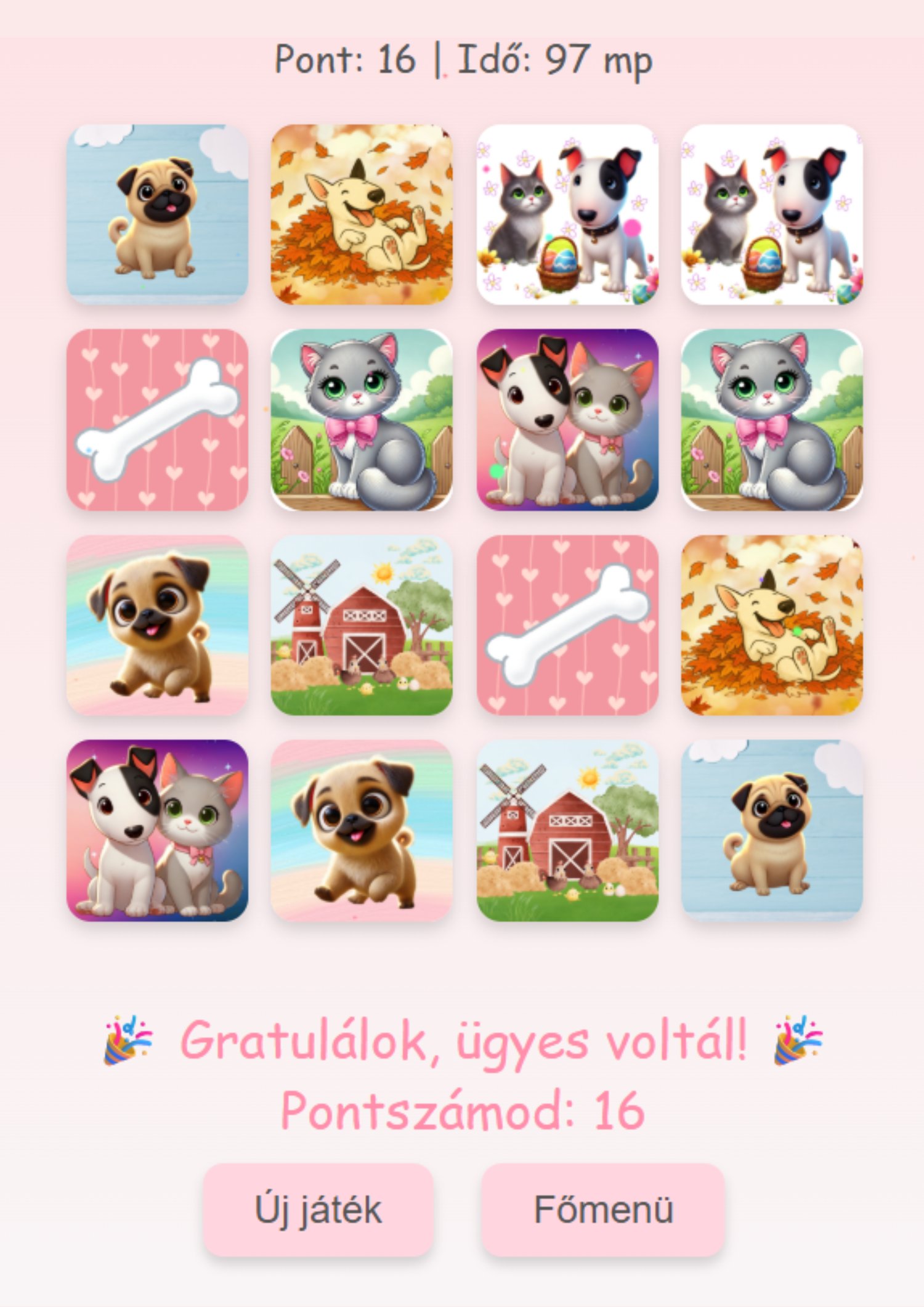 🎮 Mancs és Masni – Interaktív memóriajáték