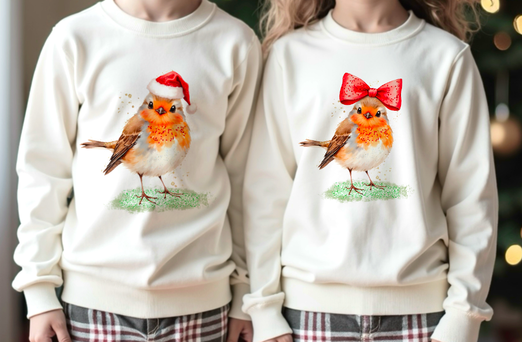 Beautiful Christmas Robins with glitter detail. 2 Christmas designs. PNG. Santa hat or bow. Sublimation, print, DTF, UVDTF, Instant download