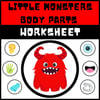 Body Parts for Little Monsters Worksheet, English Vocabulary Book for Kids
