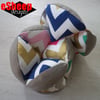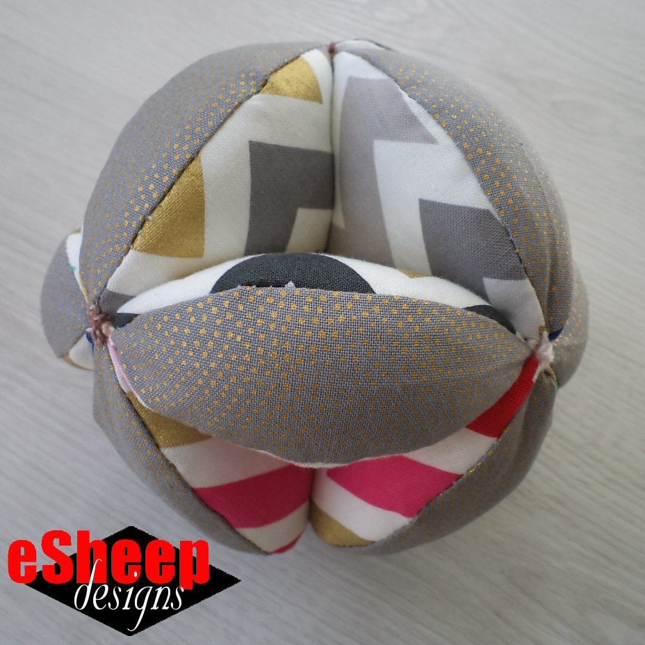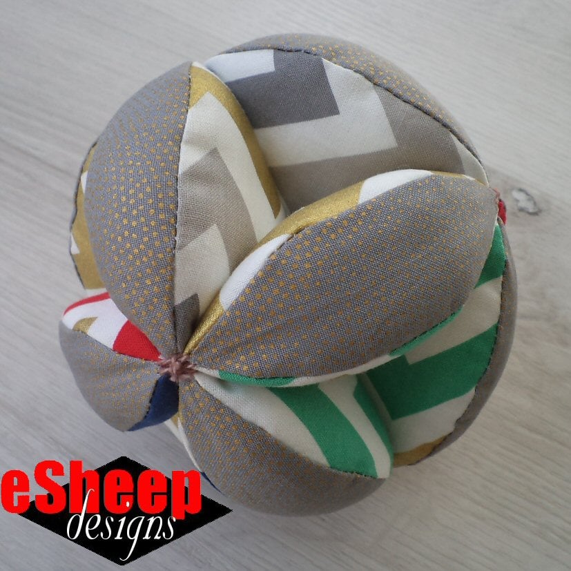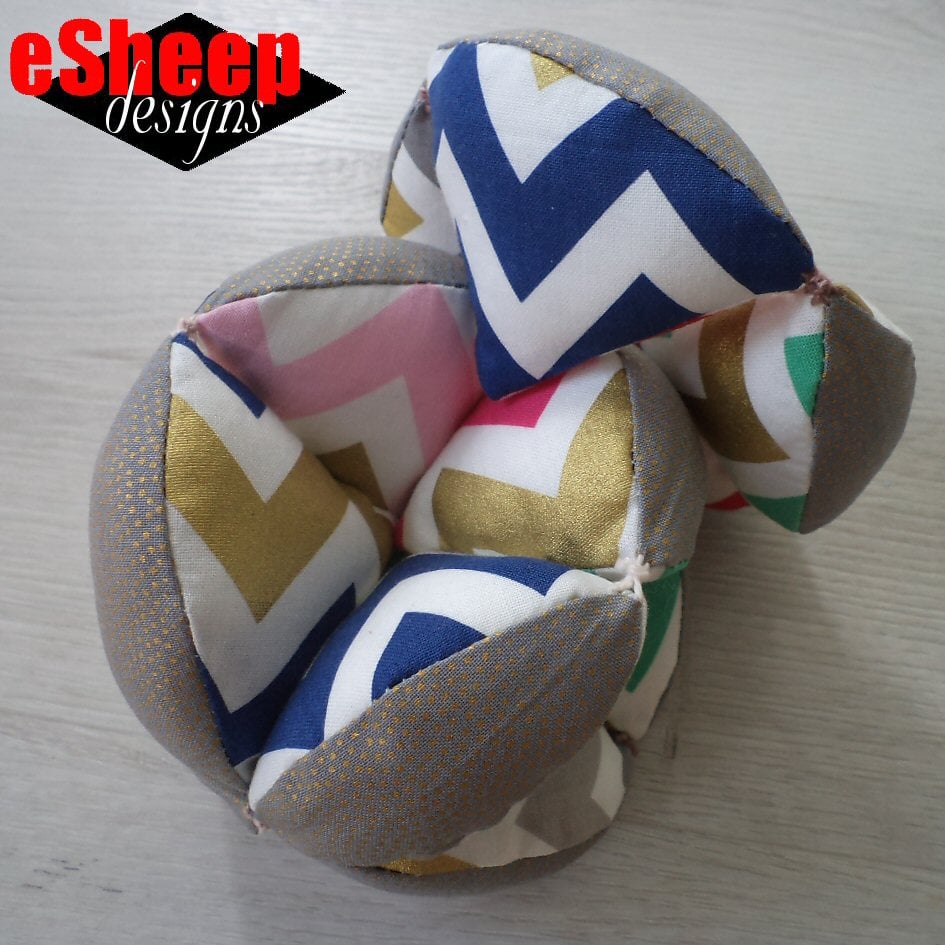 Most iterations of this project feature the ball entirely sewn up. I saw a few that showed how to make it out of three interconnected “rings” so that you can take it apart like a puzzle. That’s the one that I give instructions for in this PDF.