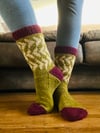 I wanted a thick and warm boot sock to wear over leggings with my boots, so I set to work. I took my Peaks colorwork pattern (from Peaks Mittens) and flipped it on its side. I wanted the leg of these socks to be extra warm, and the stranded colorwork does just that. These would also make great slipper socks.