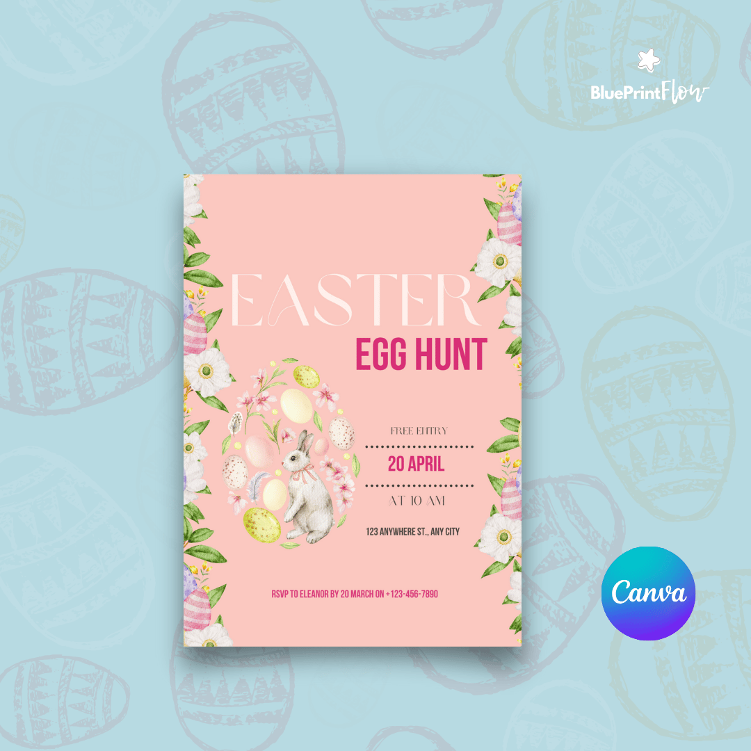 Classic Ilustrated Watercolor Easter Egg Hunt Invitation Canva Template Design