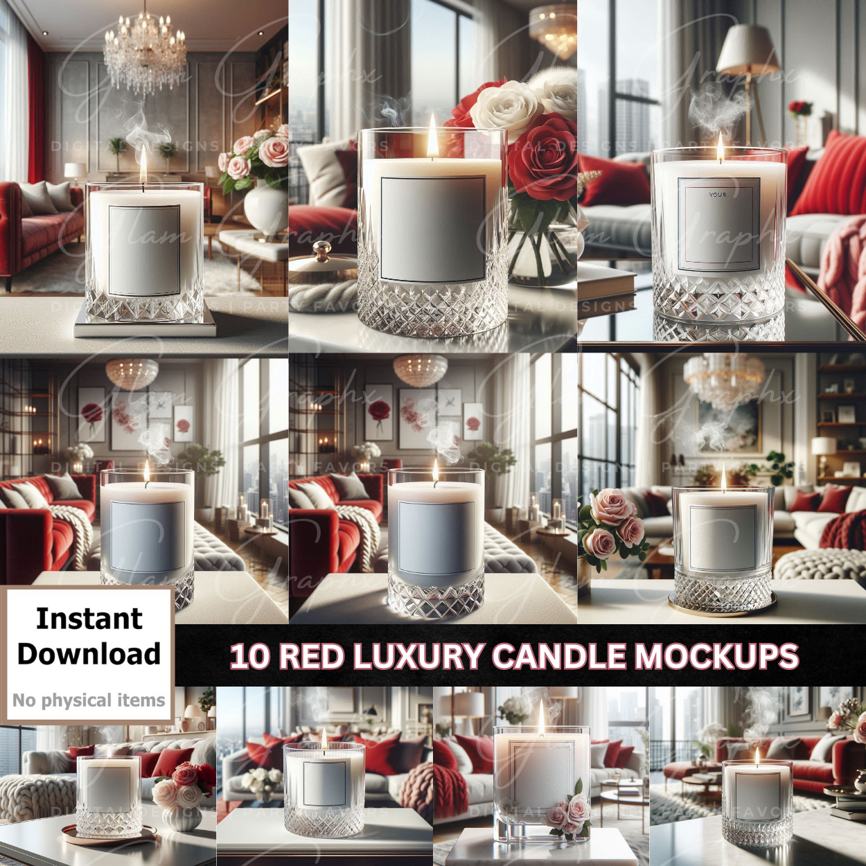 10 LUXURY CANDLE MOCKUPS (RED)