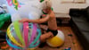 In this video Flo have few inflatable toys to destroy, for this he use his hands and a pin.