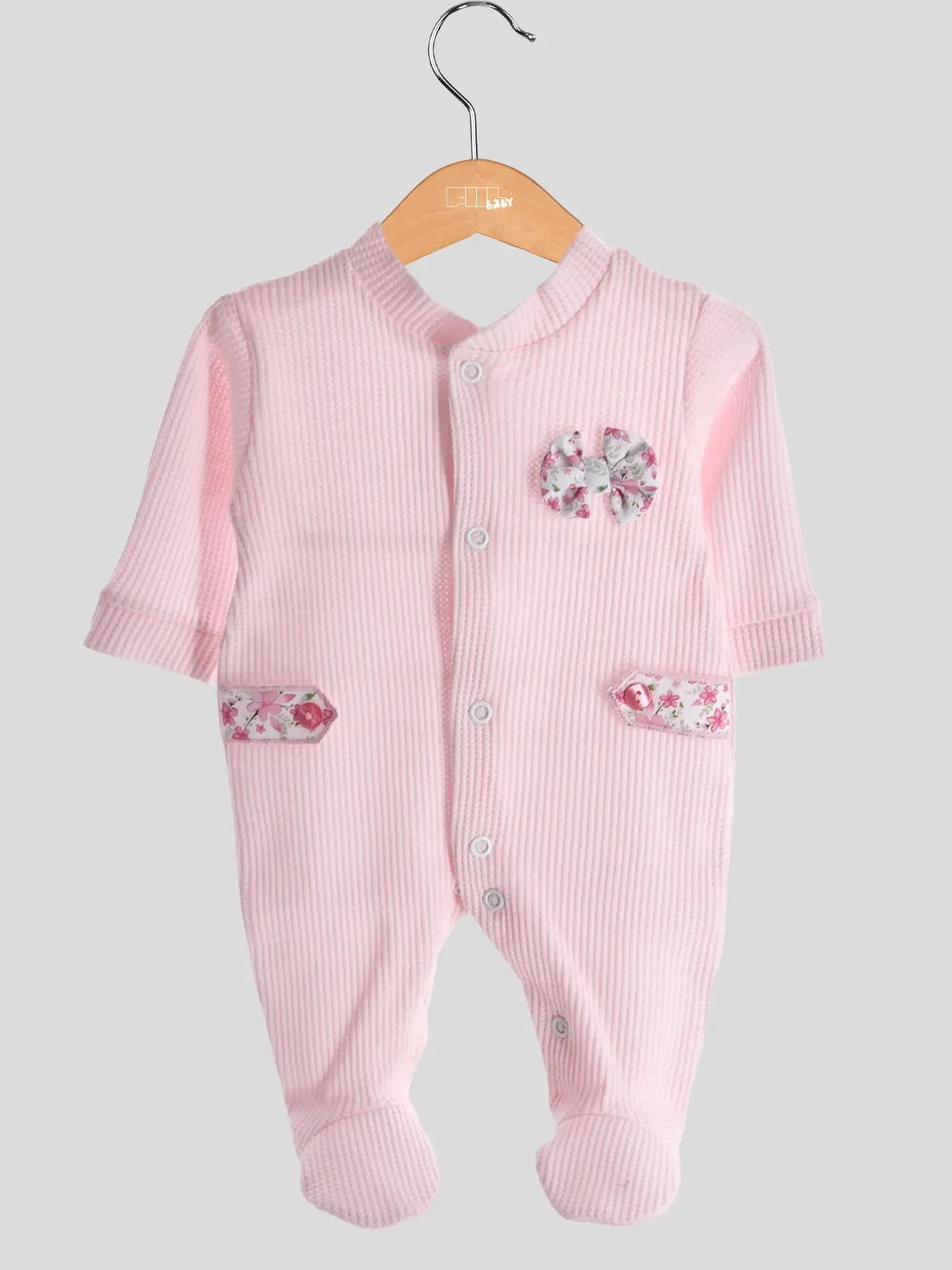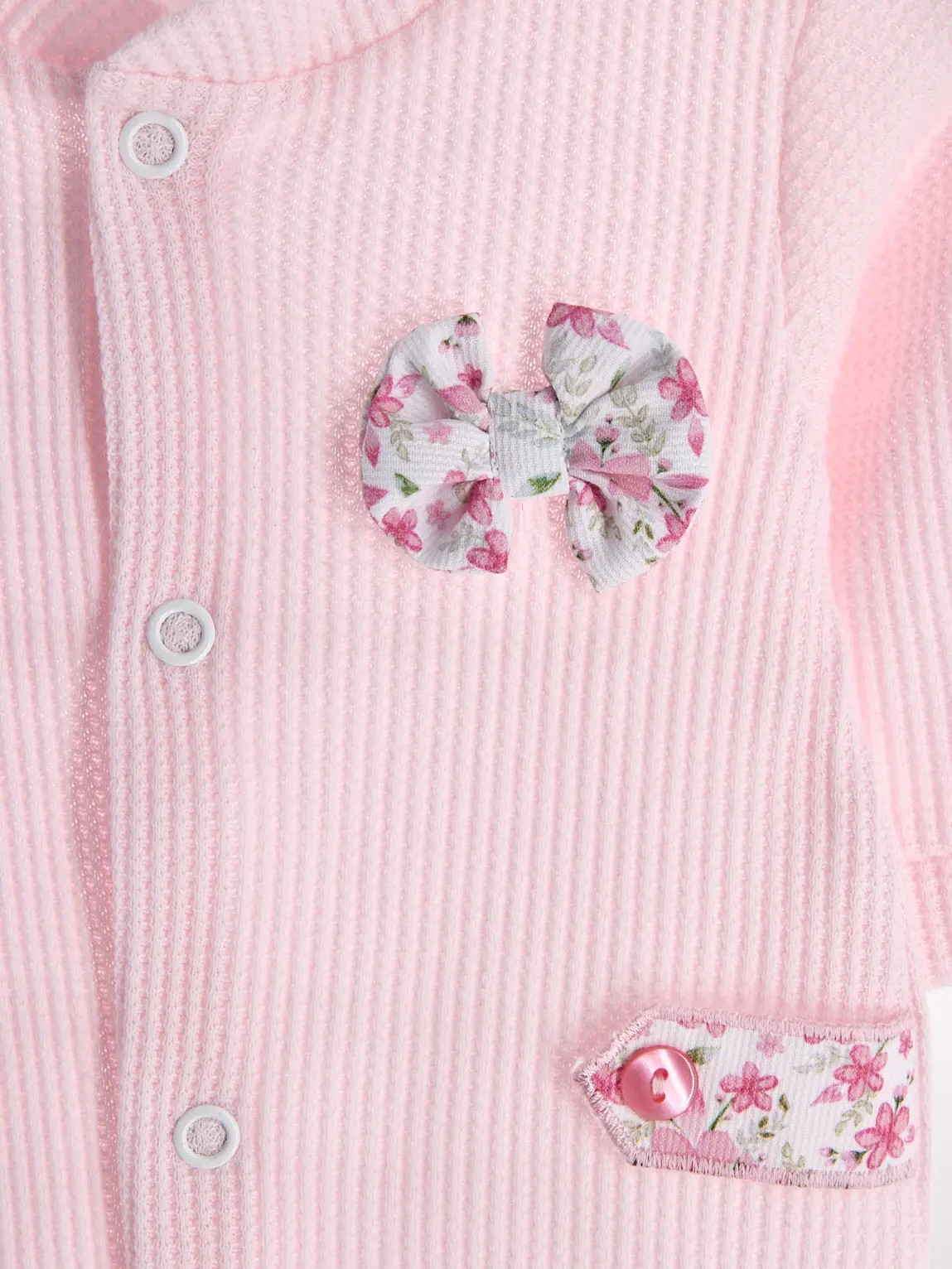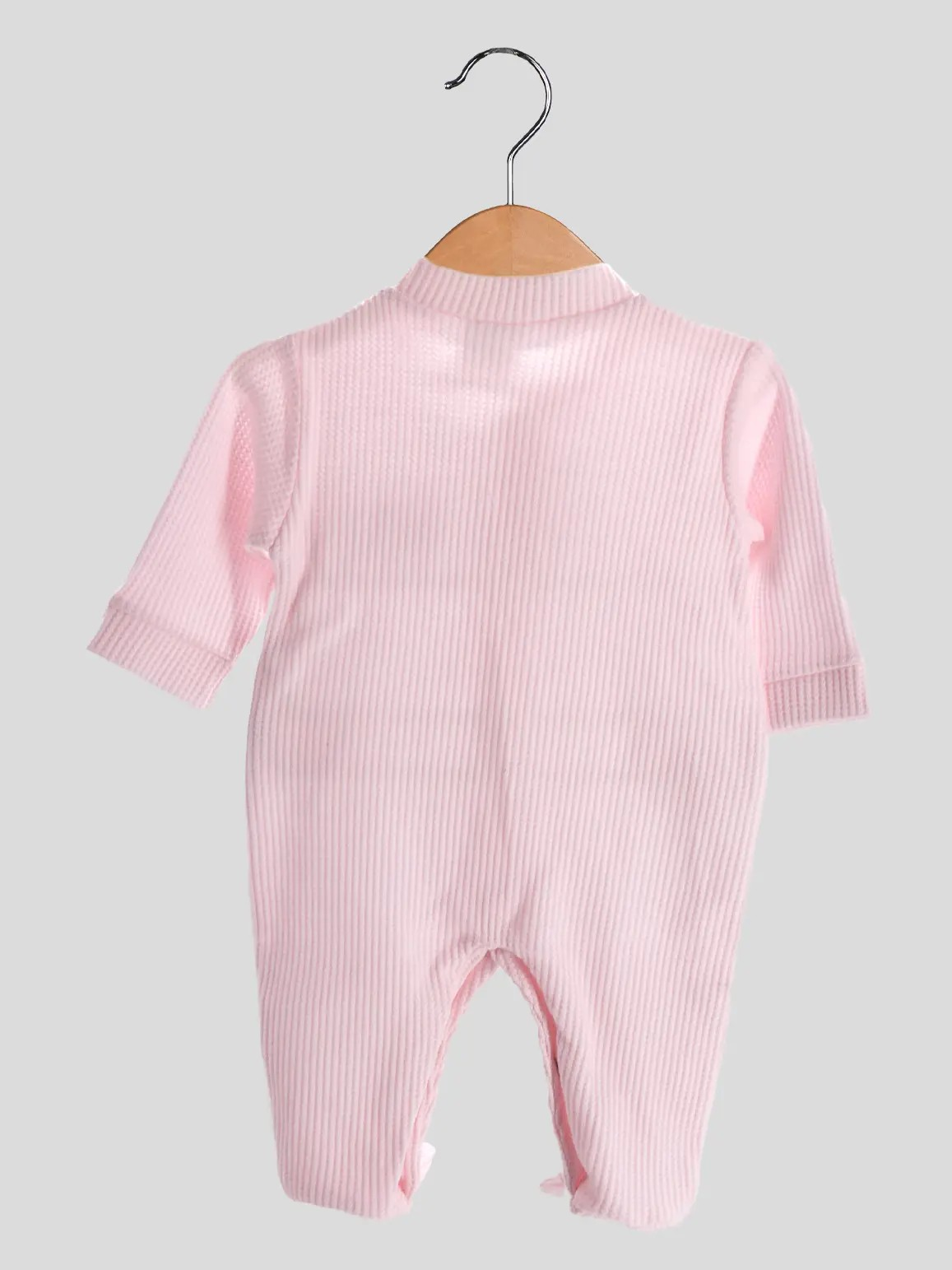 Douce et délicate, cette grenouillère en coton gaufré rose est parfaite pour les petites princesses 👶💕.