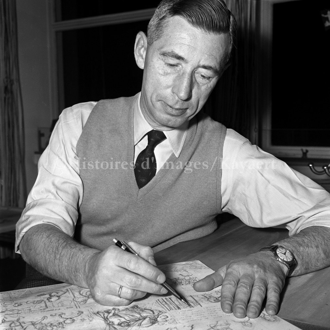 A rare black & white portrait of the legendary Belgian cartoonist Hergé, creator of Tintin, taken in 1972 by photographer Robert Kayaert.