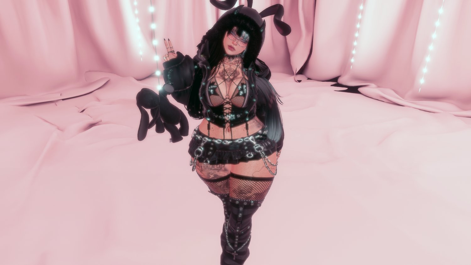 - Button up, Heels, Bunny Plush, Handcuffs, Star Kini Top & Bottom by MilkyMutt