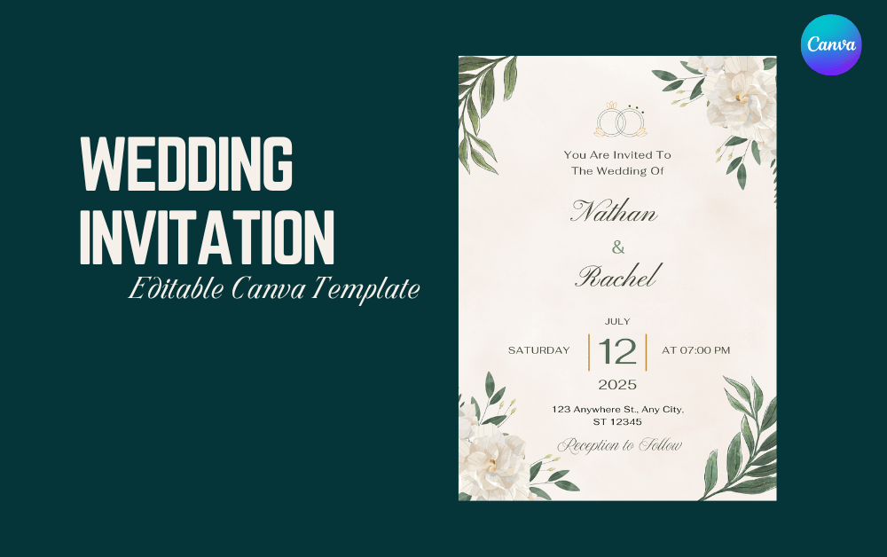 Green Minimalist Wedding Invitation – Editable Canva Template