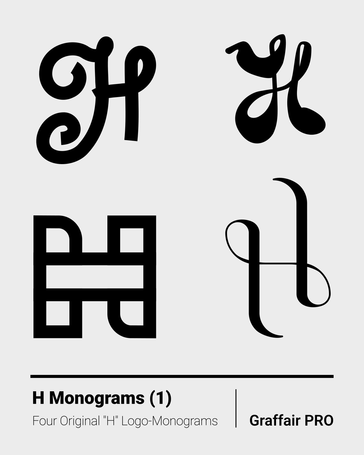 H Monograms (1): The 1st set of four original "H" logo monograms, included in the "1050 SVG Monograms" super package, which also features an Index catalog.