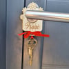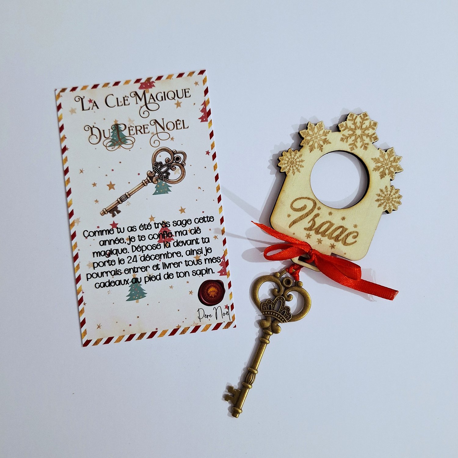 Le kit contient une clé en métal, une lettre cartonnée signée du Père Noël et un support en bois de tilleul (3 mm) à accrocher à la poignée de la porte.
