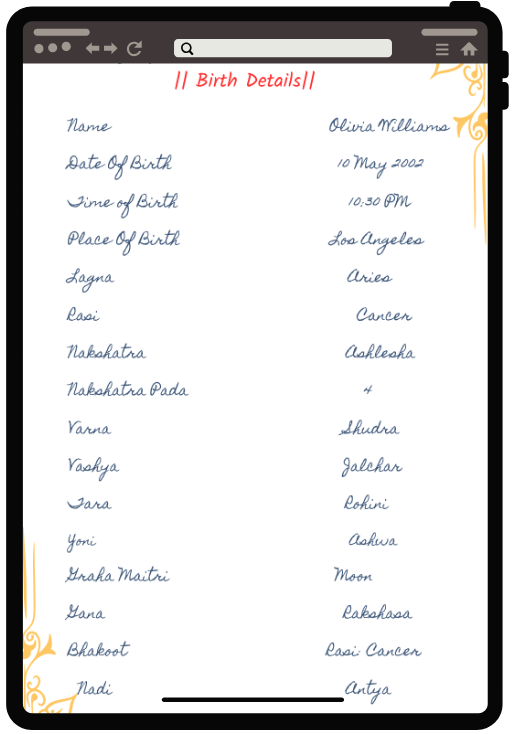 - Exact Time of Birth (e.g., 4:15 PM)