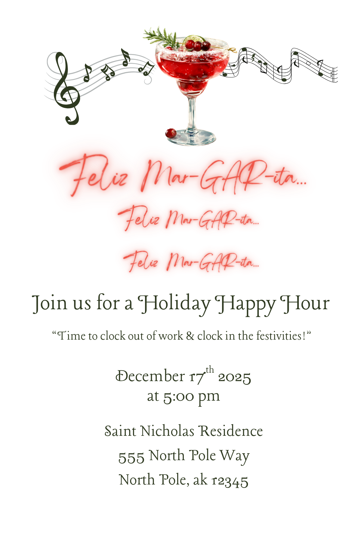 Raise a glass and spread a little cheer — it’s time to sleigh the season with style! 🍸 Whether you’re hosting a glam cocktail soirée, a Friendsmas get-together, or a merry office mixer, this elegant digital invite makes it easy to set the tone for a night of festive fun.