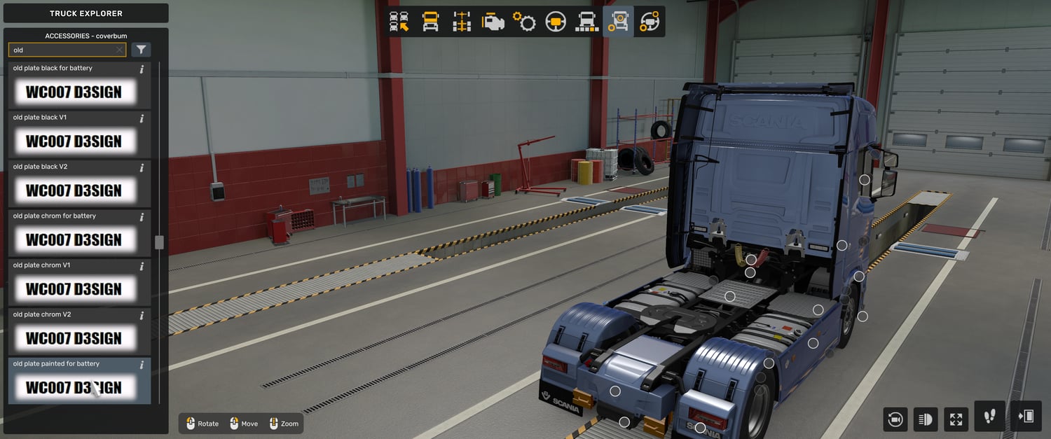 MOD description: Scania NG old skool rear bumper battery cover for all chassis, chrome, painted, black.