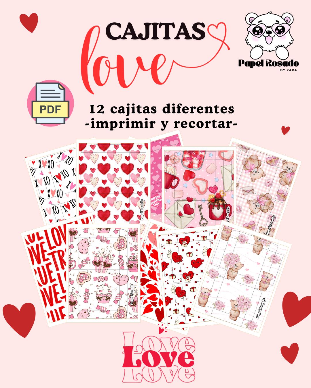 Cajitas LOVE + Stickers -12 ilutraciones-