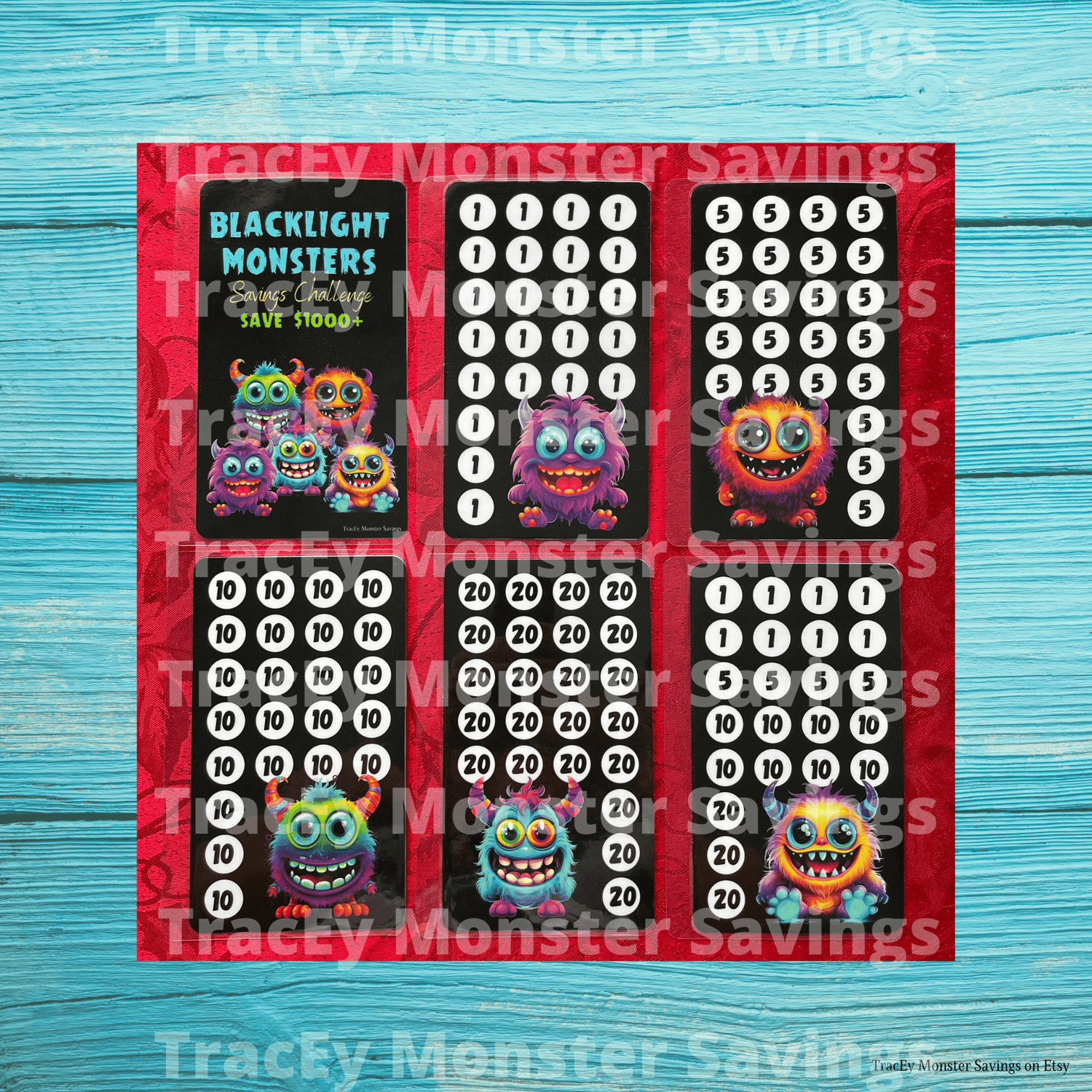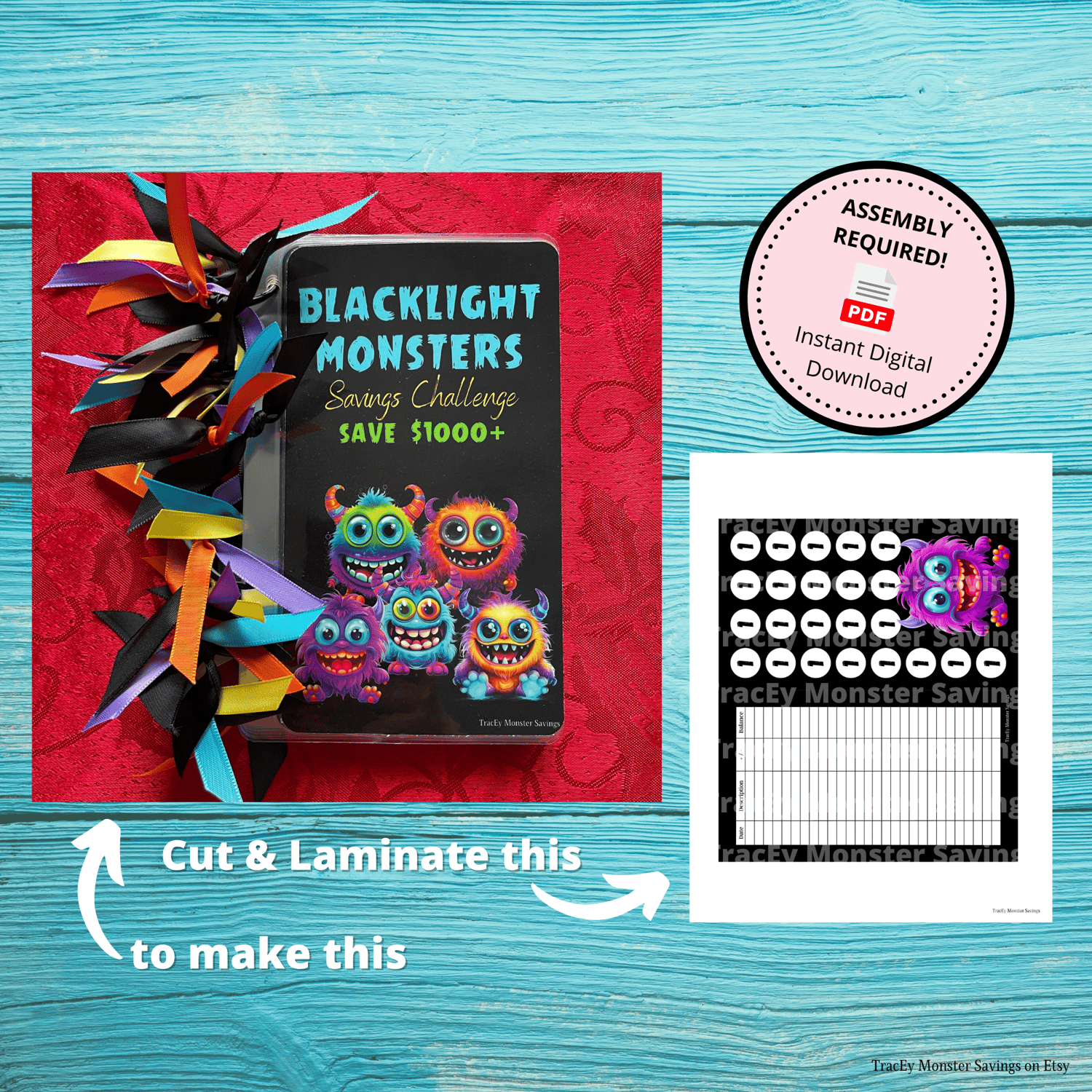 Blacklight Monsters Savings Challenge Tracker Album Booklet Binder | Instant Digital Download | Saving Money | Monster Themed | Halloween