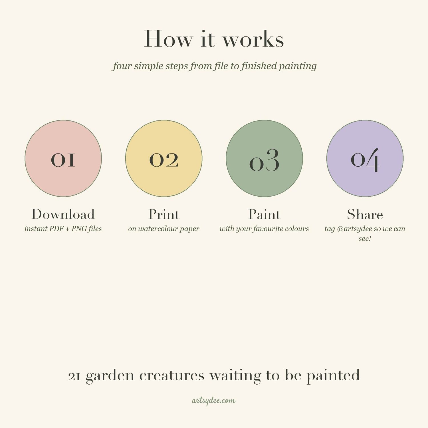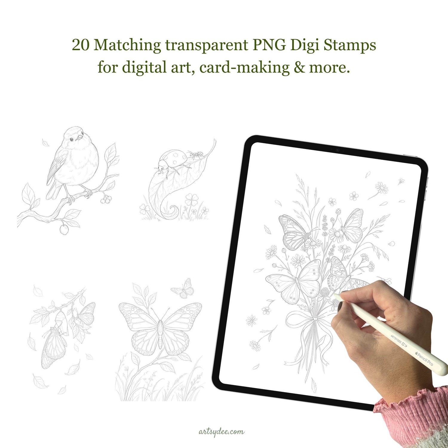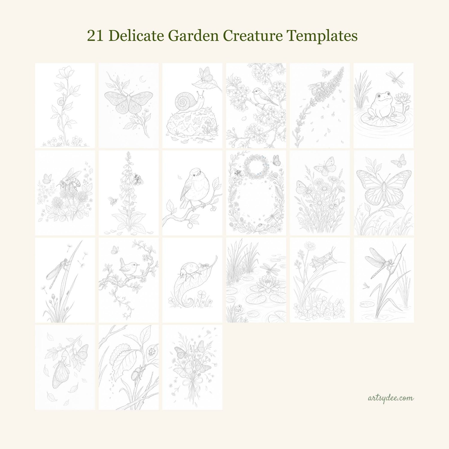 21 Garden Creatures Watercolor Templates & Digi Stamps | Printable Outlines for Painting, Coloring & Digital Art | Procreate PNG