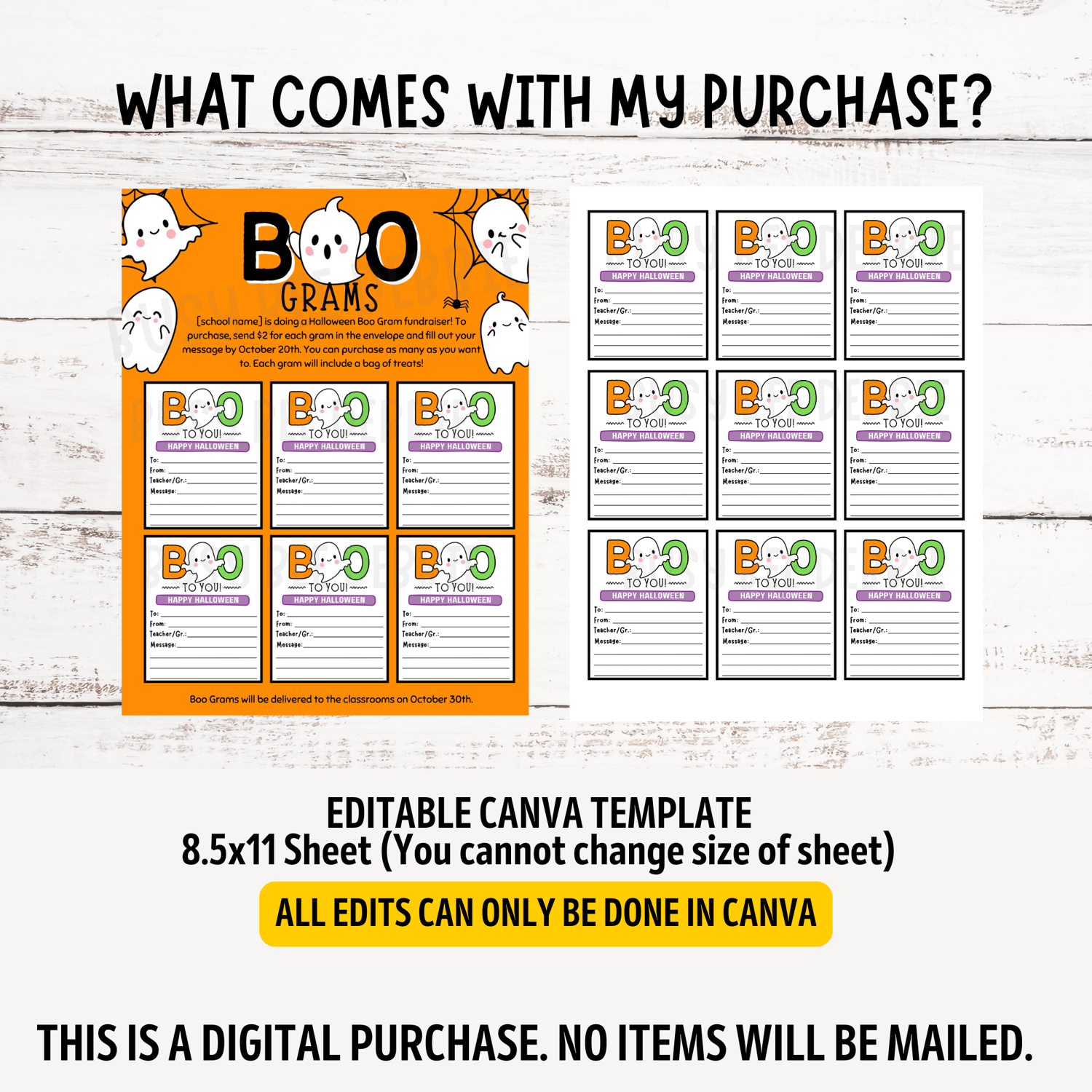 Halloween Boo Grams | PTA, PTO School Fundraiser Printable | Halloween Cards for Students | Fall Halloween Fundraiser Flyer | Candy Grams