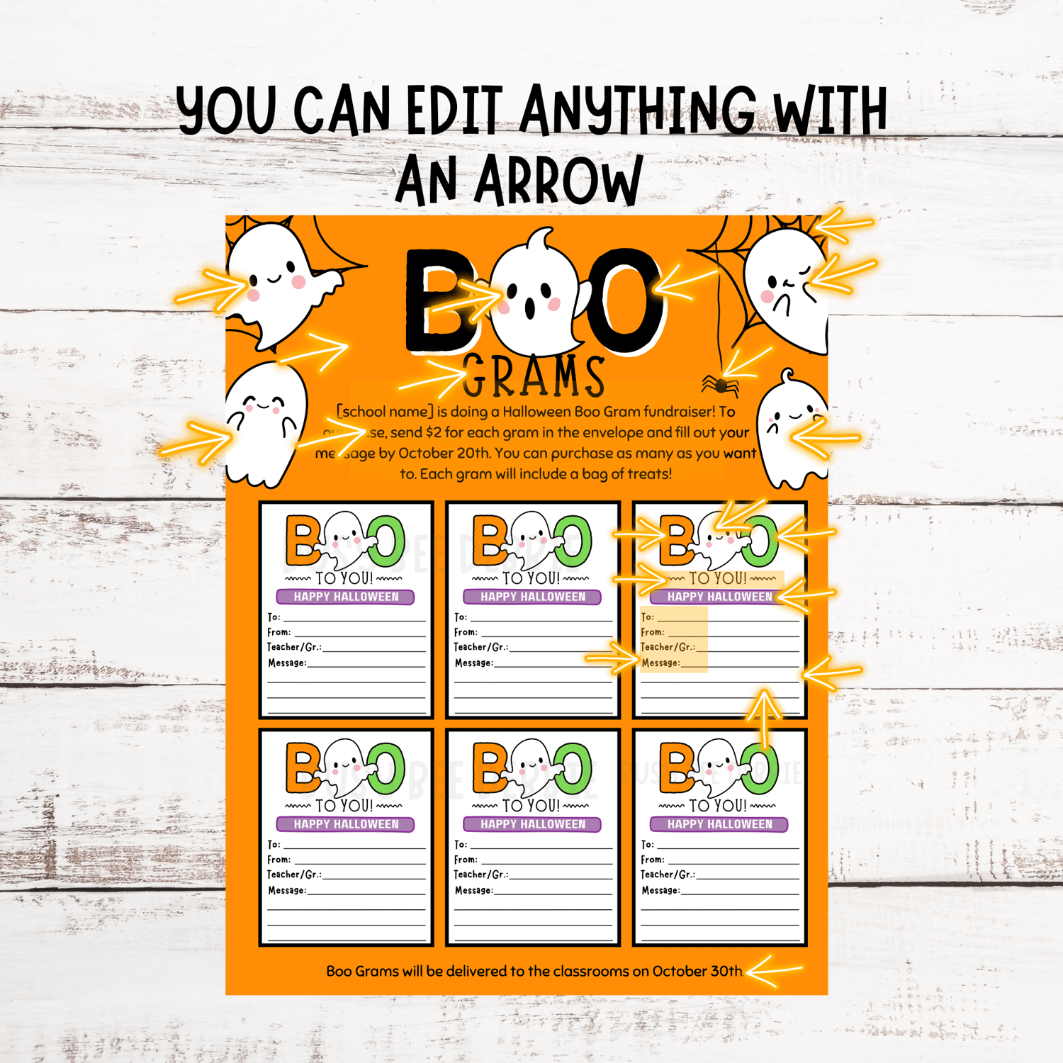 Unleash the Halloween fun AND funds with our editable Boo Grams! These candy gram templates will bring a spooky smile to everyone's faces and raise money for your favorite cause. Perfect for schools, community groups, or any Halloween lovers!