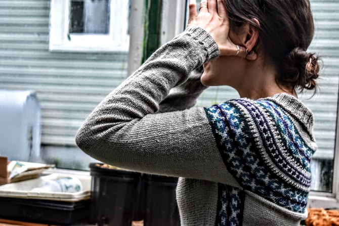 Black Duck Siding is a circular yoke with flattering side bands on the body and a little bit of slip stitch colourwork imbedded in the stranded yoke. The stranded colourwork bands on the body sides are worked in the round, so there are small steeks involved. The first steek is done over 15 rounds, so it is perfect introduction to steeking if you have never steeked before! The sweater body is worked sideways with short rows at the bust and hip to achieve waist shaping and the colourwork bands on each side of the body are worked in the round and steeked as you go. Increases and decreases are made as you work around the body to shorten the sweater in the front and to lengthen the sweater in the back. The sleeves are worked in the round, bottom up, and joined to the body at the yoke. The colourwork yoke is knit upwards from the arm divide to the neck, where short rows are worked across the back neck before the collar.