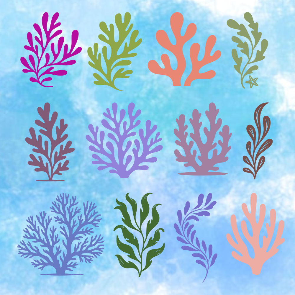 Immerse yourself in creativity with this set of 12 seaweed and coral designs, perfect for adding a fresh, marine touch to your projects. These digital files are ideal for creative stationery, decor, vinyl, and more, thanks to their versatile and easy-to-use style. Each silhouette is vectorized with high quality, ensuring a clean, precise cut that you can scale to any size you need without losing detail.