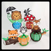 Champignon, hérisson, renard et écureuil