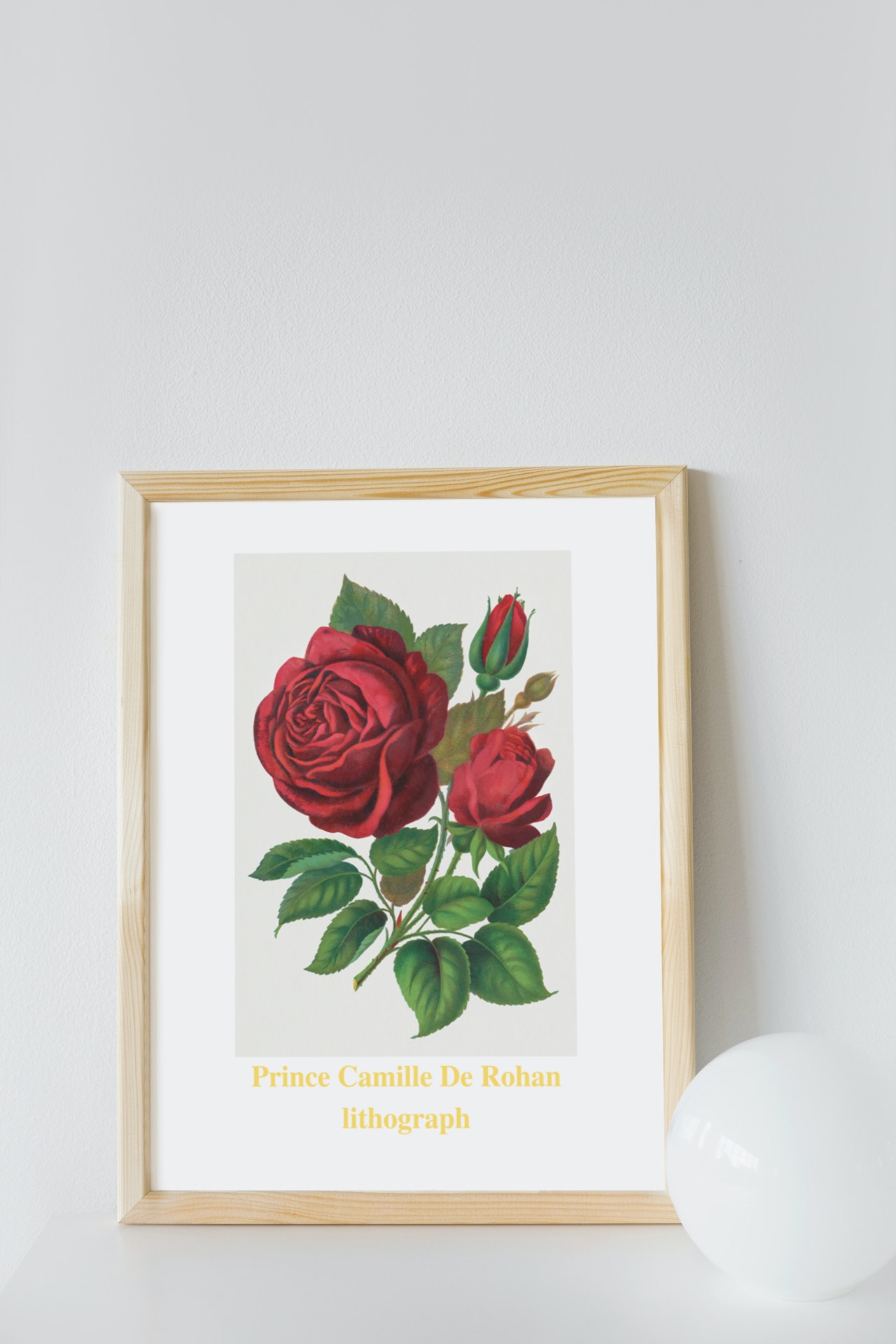 Red rose, Prince Camille De Rohan lithograph. Digitally enhanced from the original 1900 edition plates of Botanical Specimen published by Rochester Lithographing and Printing Company.