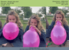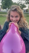 Pretty Margot inflating a bright pink balloon til it pops during a pick-nick in the park. The loud pop surely scared some people.
