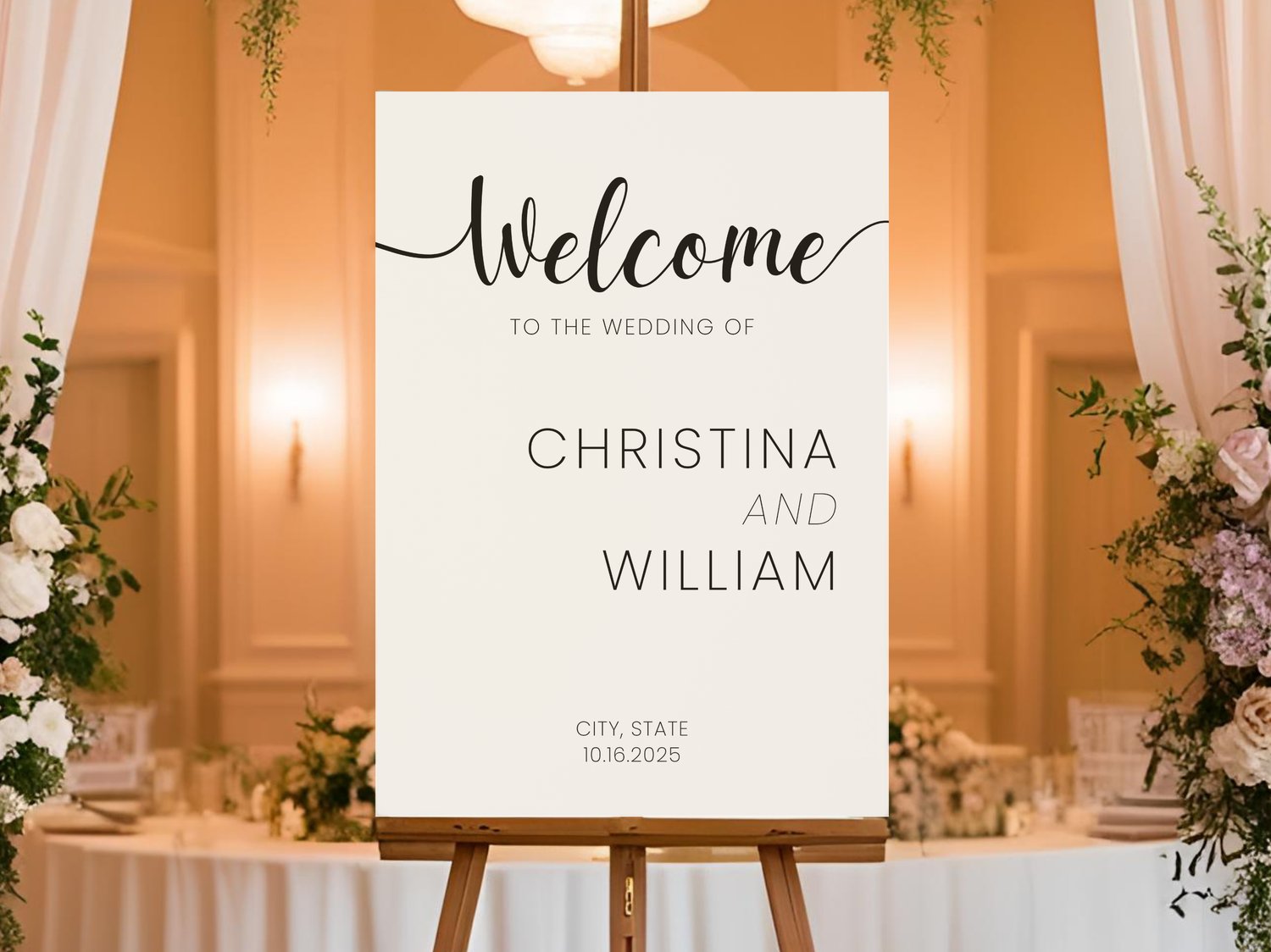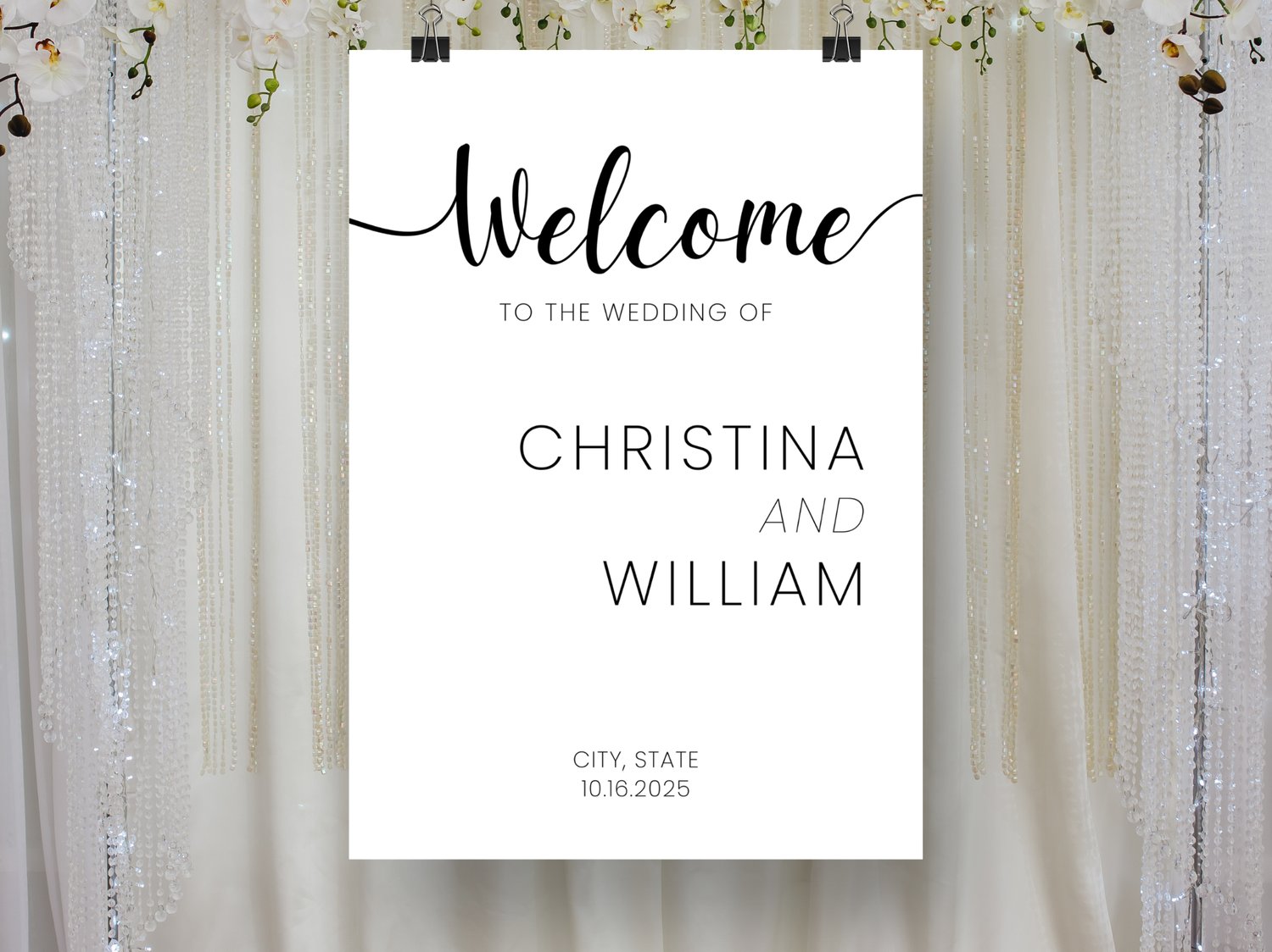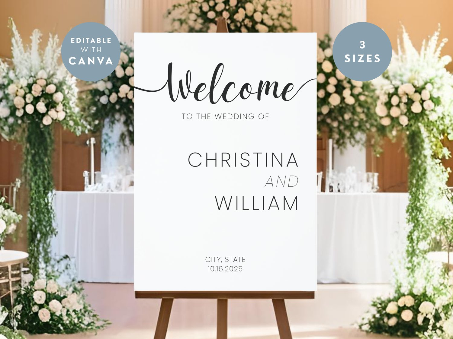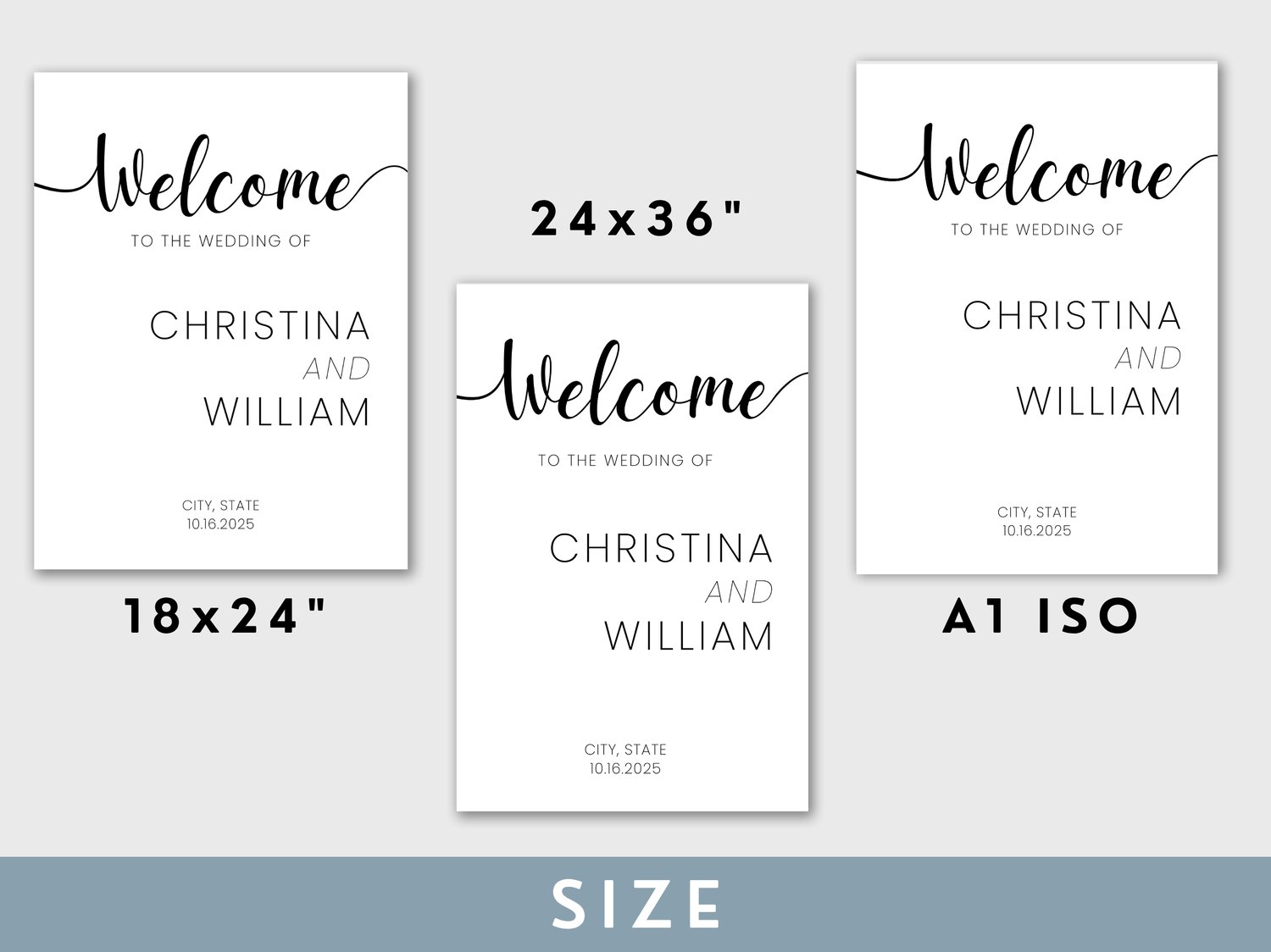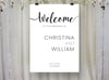 Welcome sign for a minimalist wedding with a modern layout. This custom printable template is perfect for an elegant wedding venue and minimal wedding party decor.