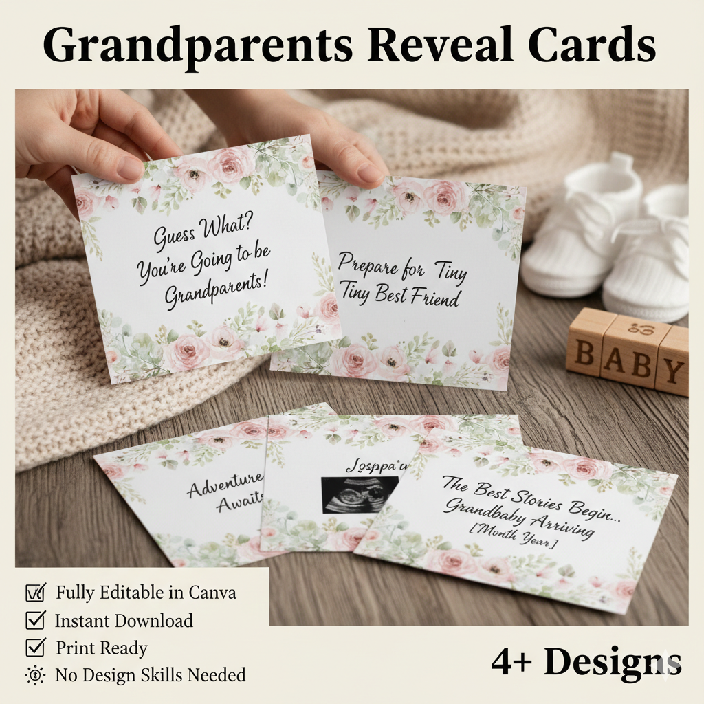 π₯ Premium Pregnancy Announcement Grandparents Reveal Cards (4 Canva Templates)