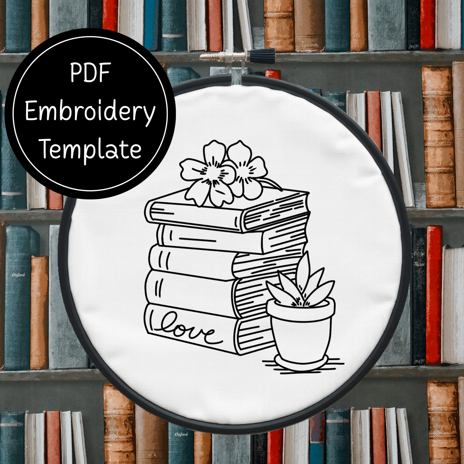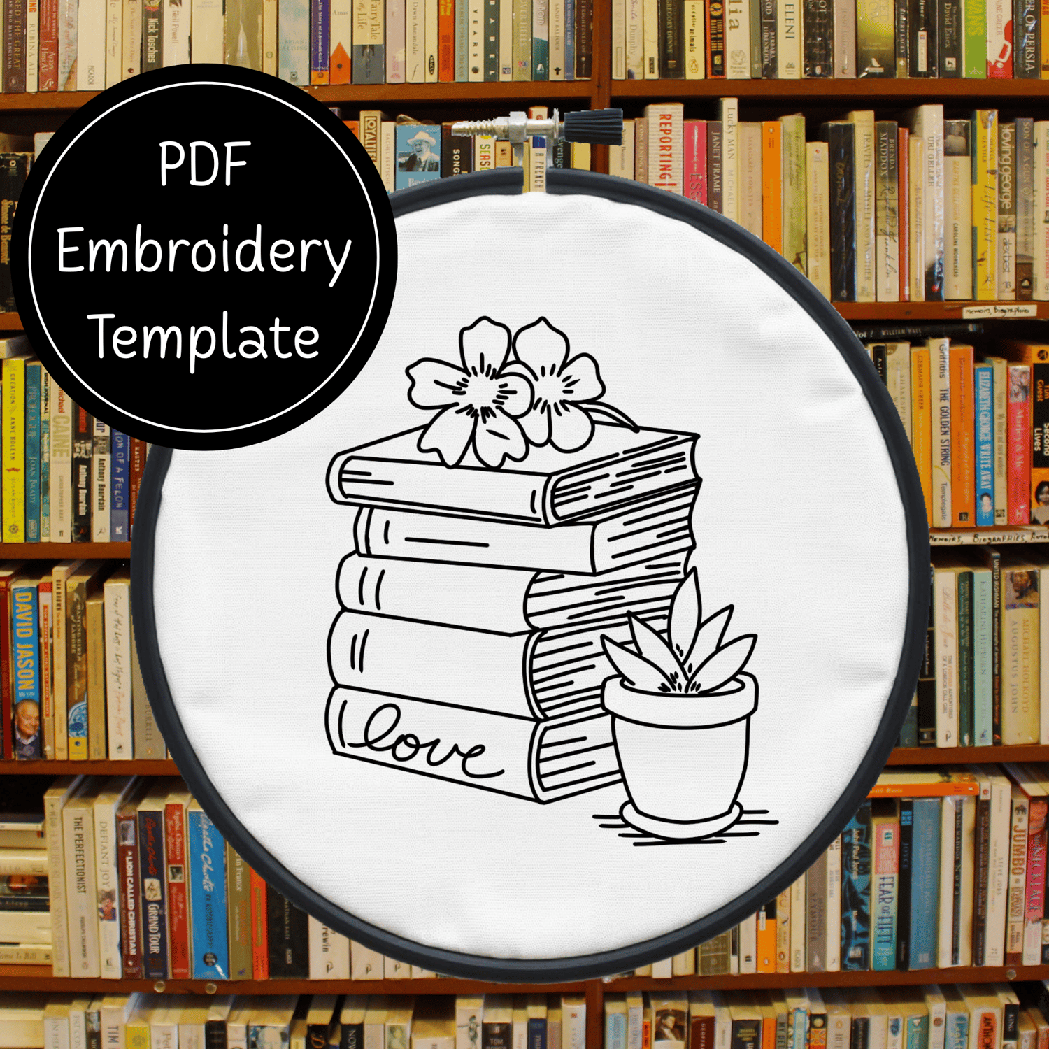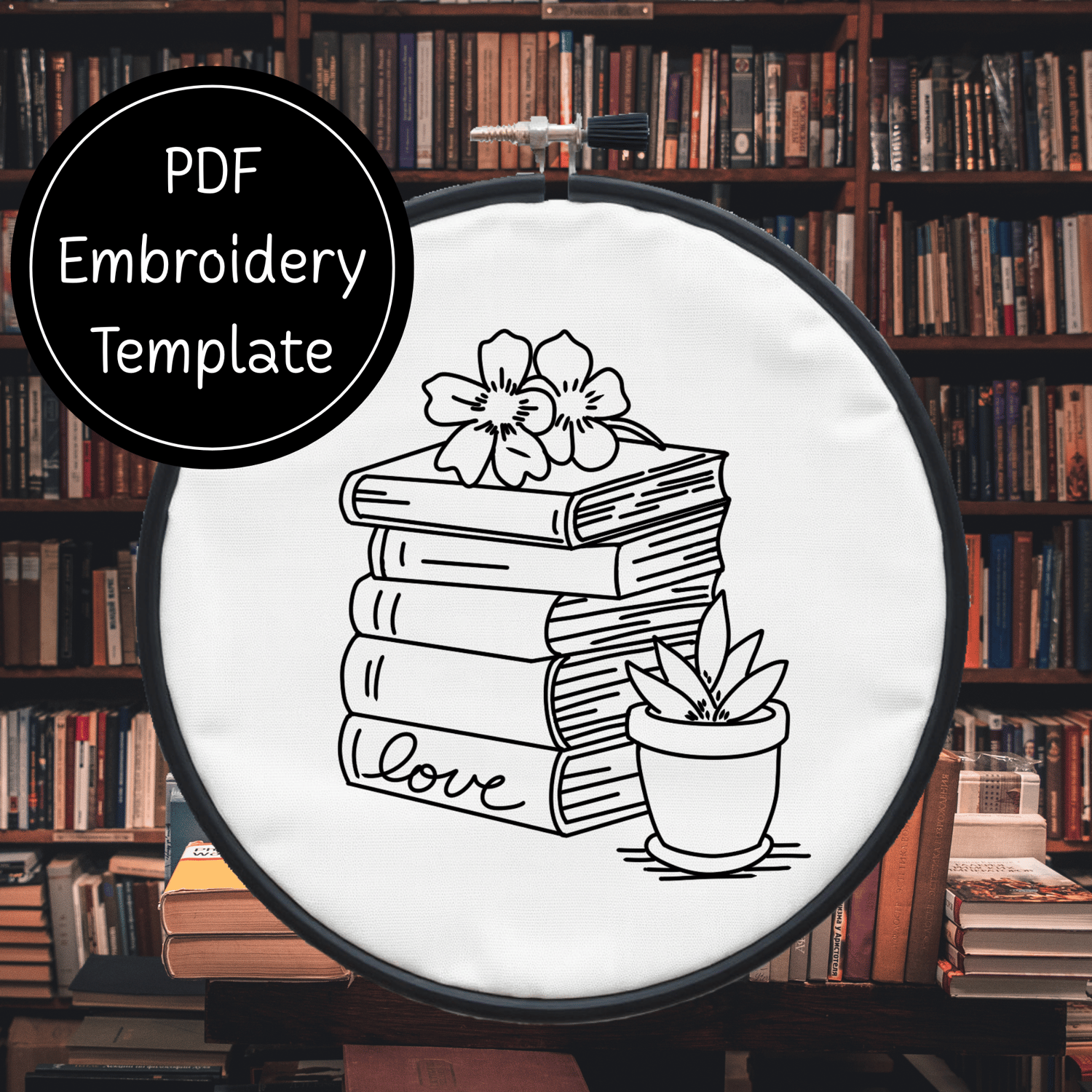 Book Love Hand Embroidery Pattern DIY Library Design For Hand Stitching - Instant Download