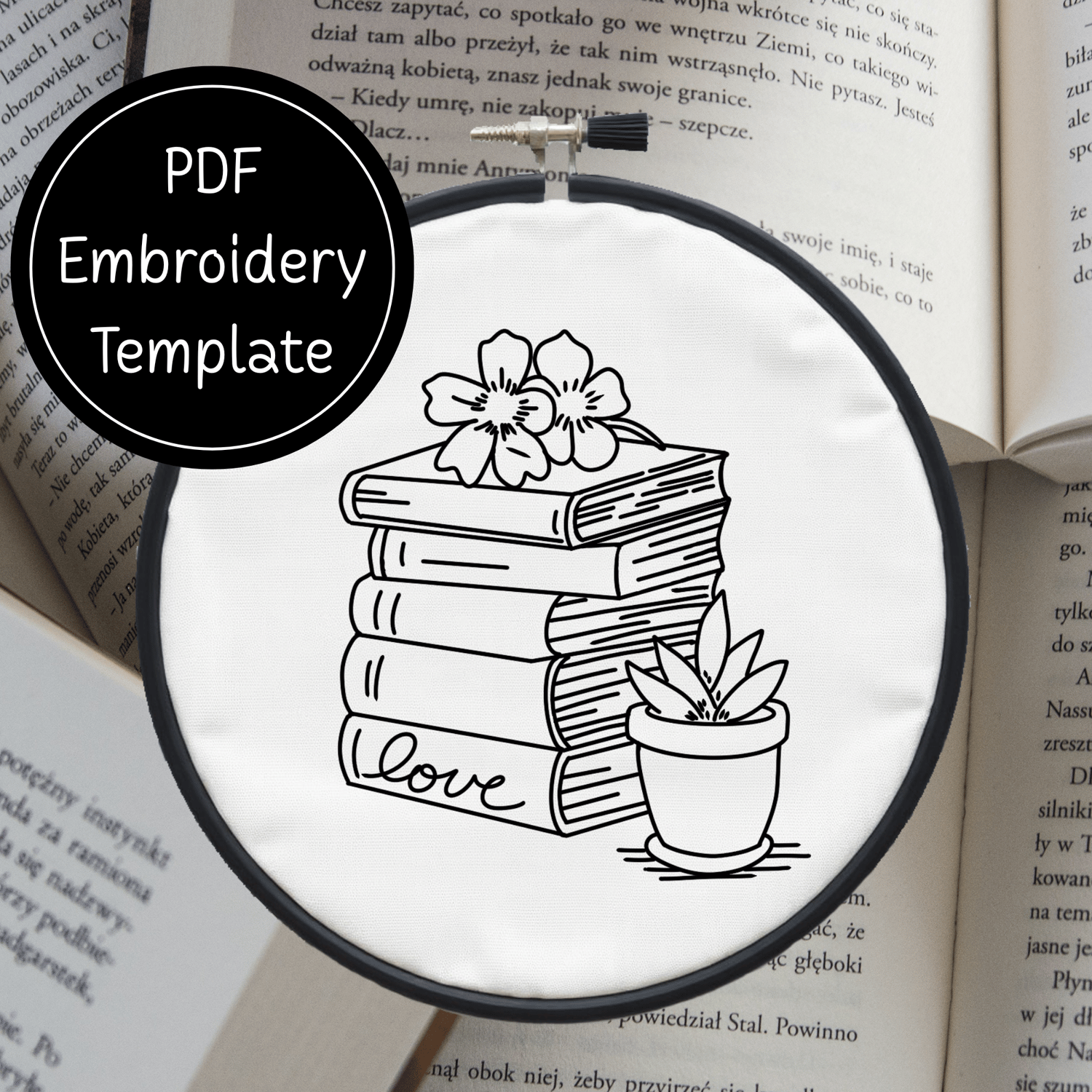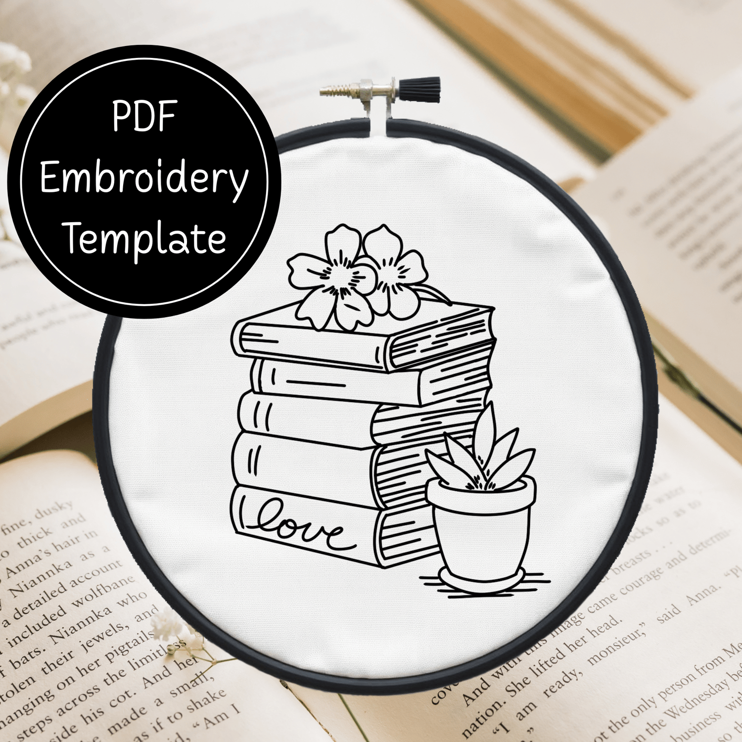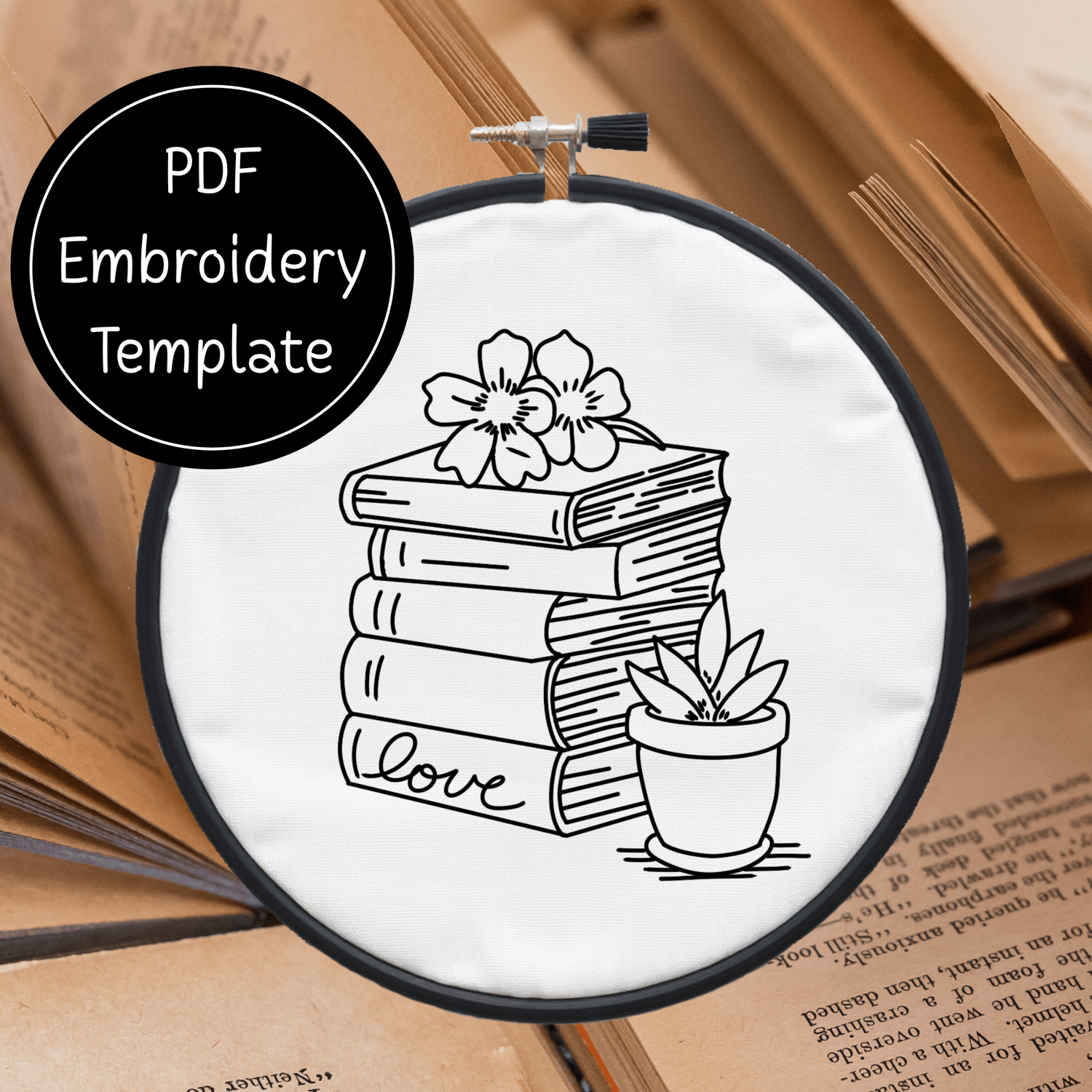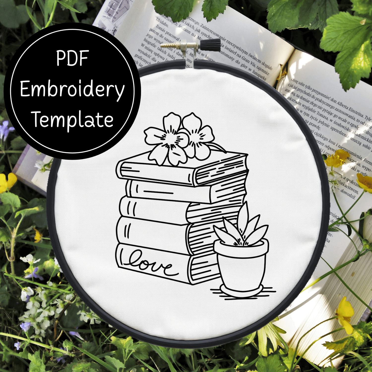 Book Love Hand Embroidery Pattern DIY Library Design For Hand Stitching - Instant Download