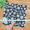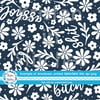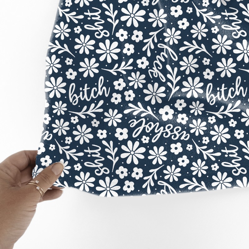 Swear words subtly hidden within flowers and leaves in navy.
