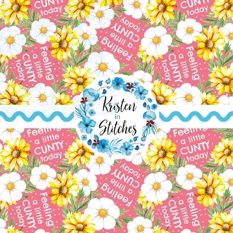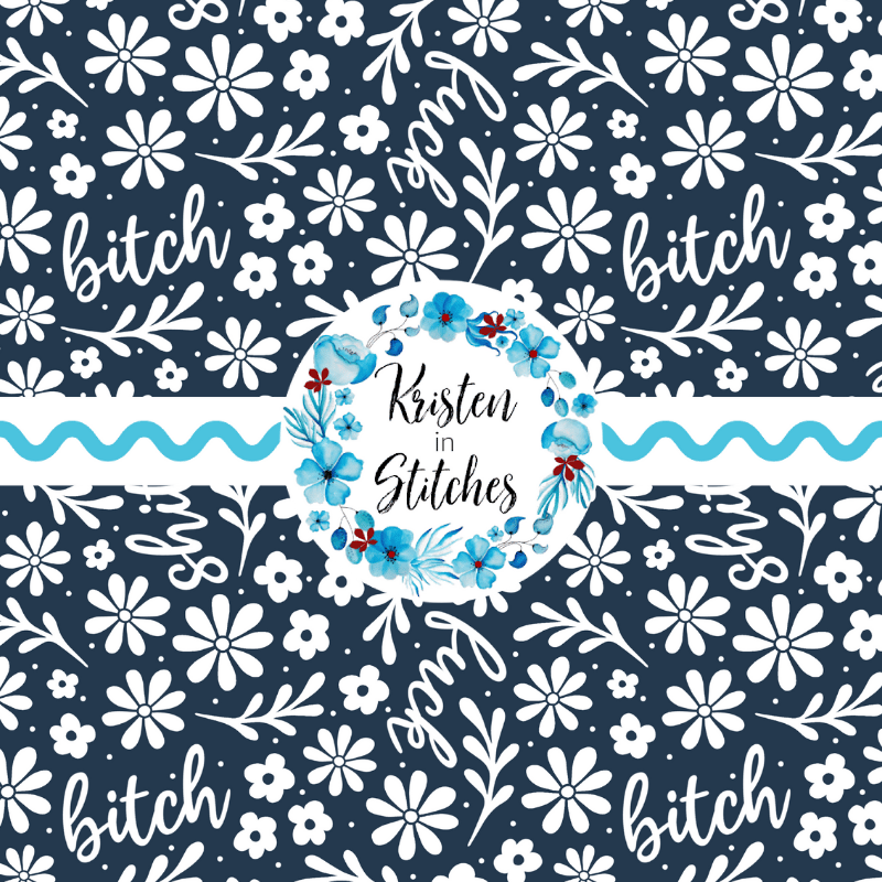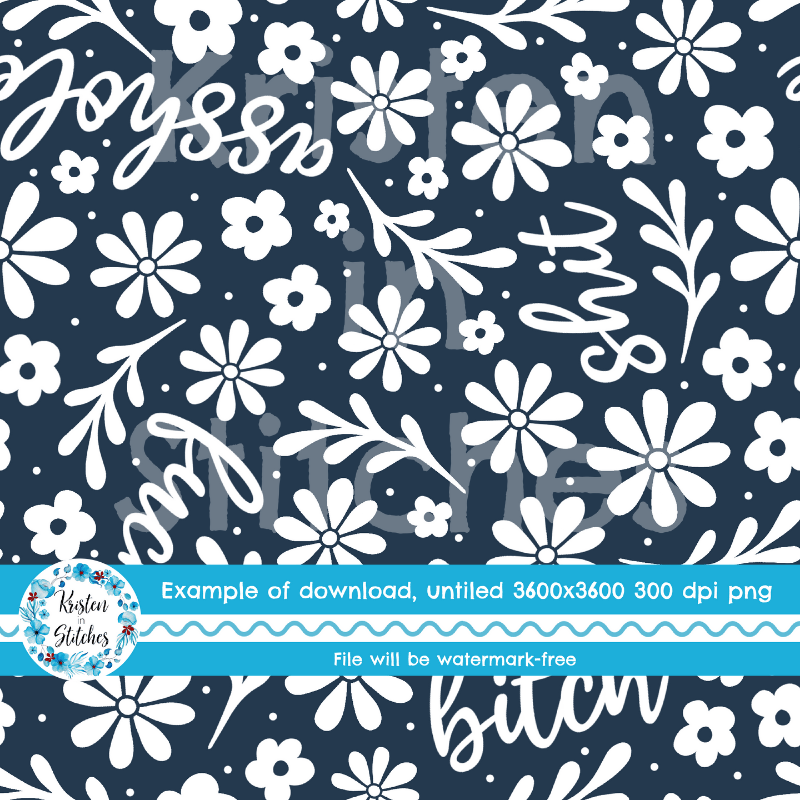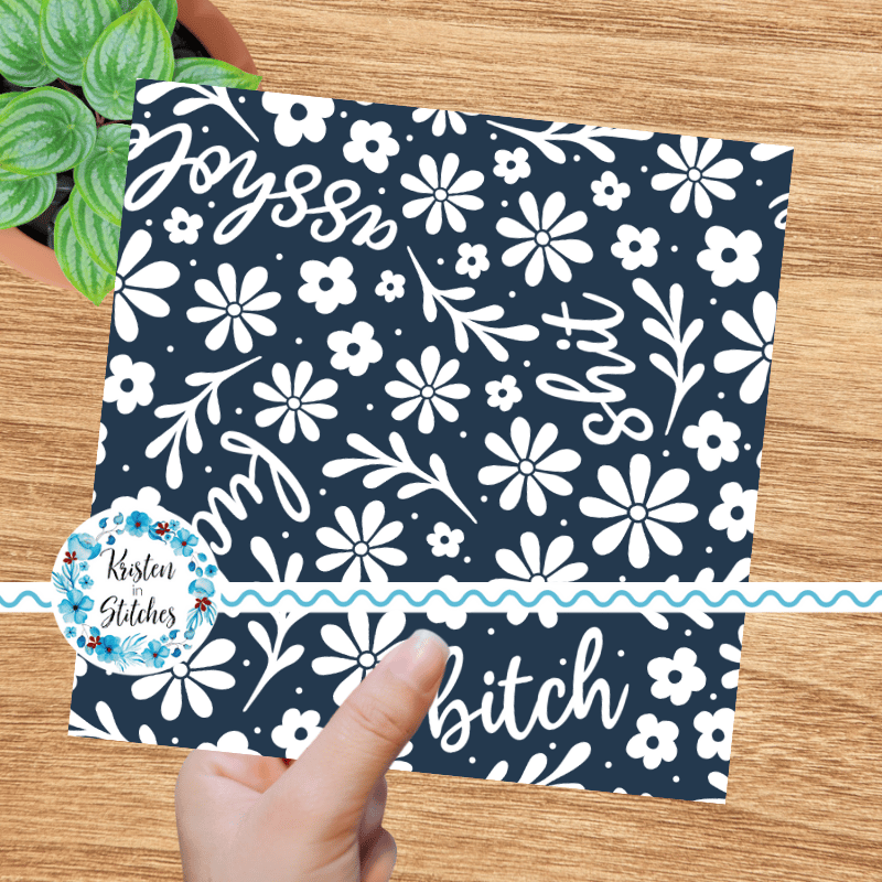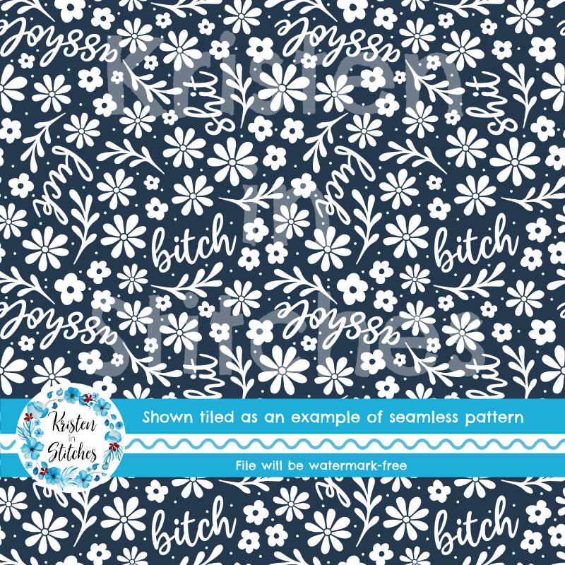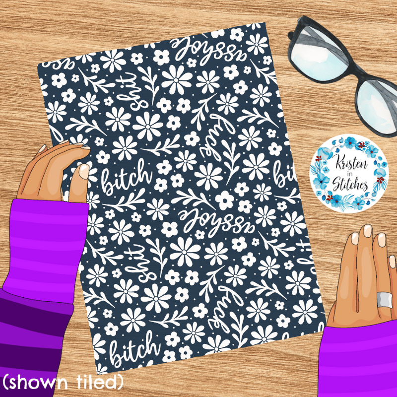 Subtle Sweary Floral Seamless Pattern, Swear Words Flowers in Navy