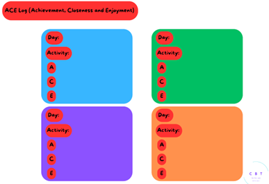 The ACE Log is a powerful tool designed to help individuals track and balance their daily activities by focusing on three key areas: Achievement, Closeness, and Enjoyment. This structured approach encourages reflection and intentional planning, making it ideal for therapists guiding clients through behavioural activation or individuals looking to enhance their overall wellbeing.