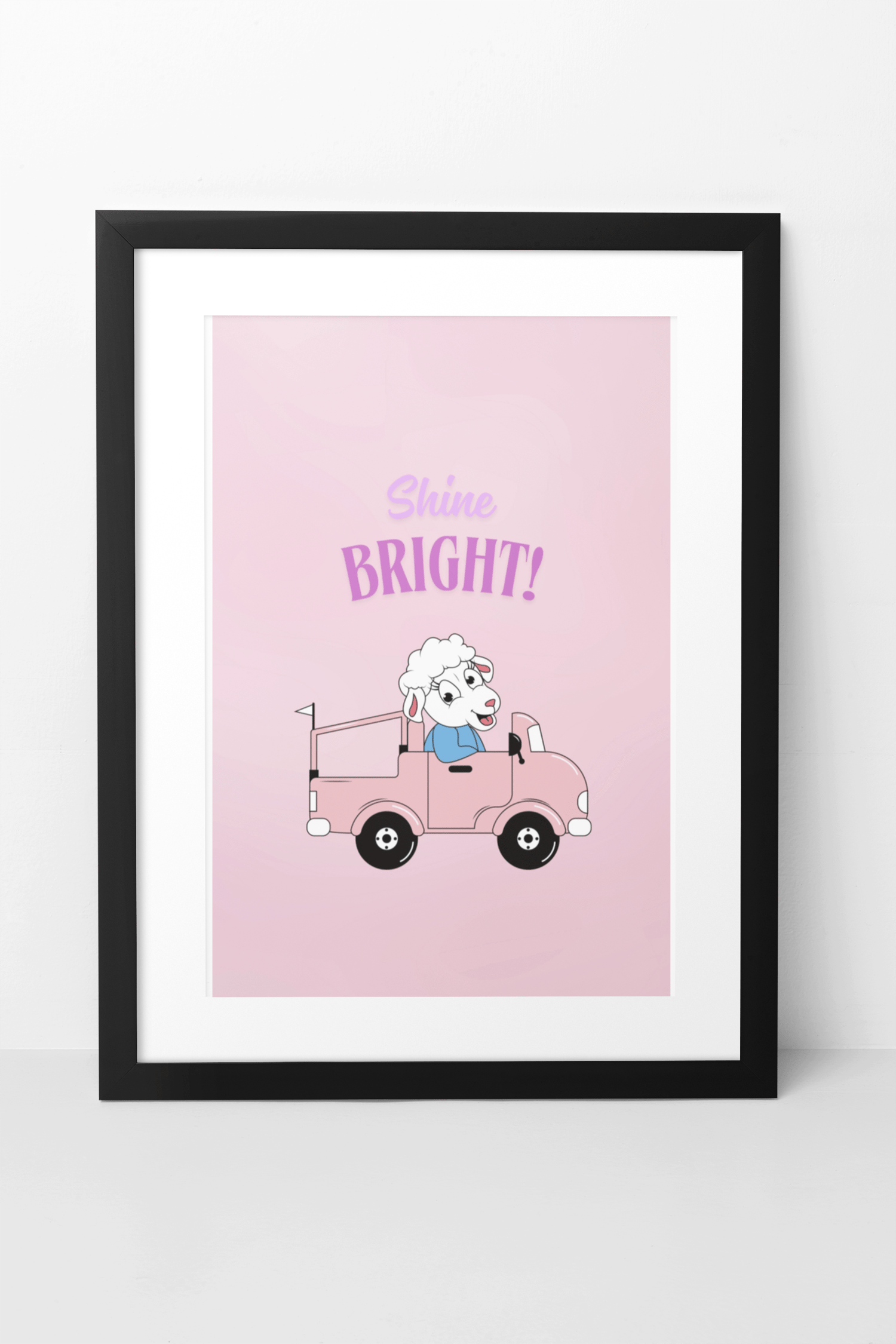 This print features an adorable animal driving a colorful vehicle, paired with an encouraging phrase. This energetic and inspiring print brings joy and movement to any room..
