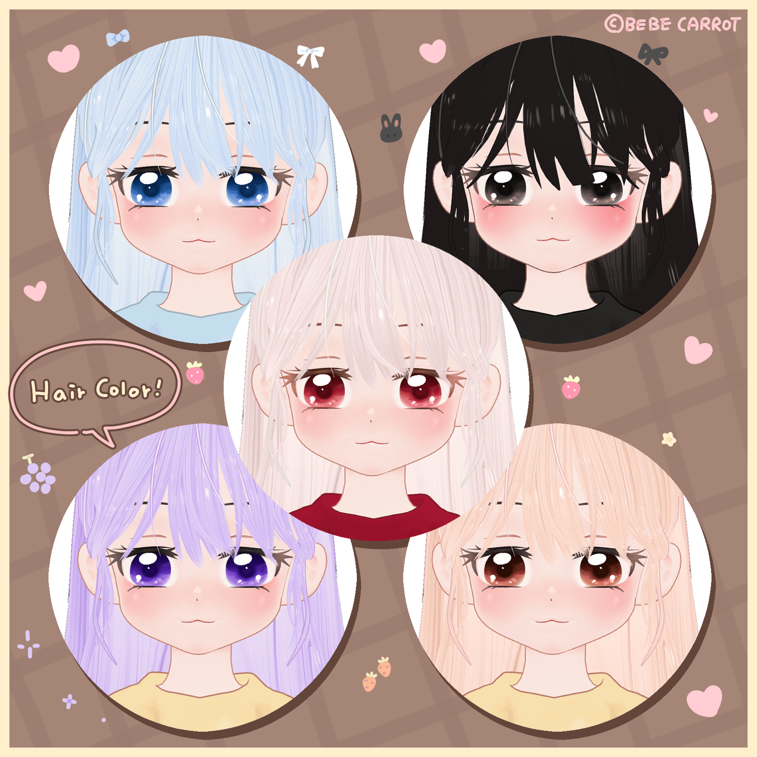 - 6 color hair ( Pink, White, Yellow, Purple, Blue, Black )