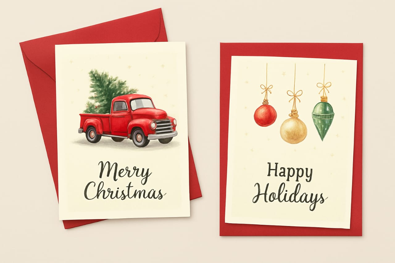 π 12 Christmas Cards (Festive, modern, classic styles)