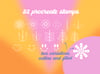 Get creative with these groovy retro flowers stamp set for procreate. Make fun and fast illustrations or funky patterns in procreate. Save time by using high quality hand drawn stamps. You will find all kind of floral stamps as well as some smiley faces and leaves to bring you back to the 70s. There are 82 different stamps in total ready to use in procreate on your iPad.