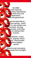 Ingredients: onion, garlic, paprika, black pepper, chili powder, cayenne pepper, lemon