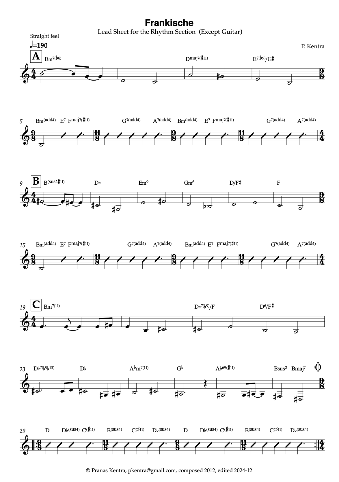 Frankische (Head In, Head Out, Special Part, Coda, and Lead Sheet in C)