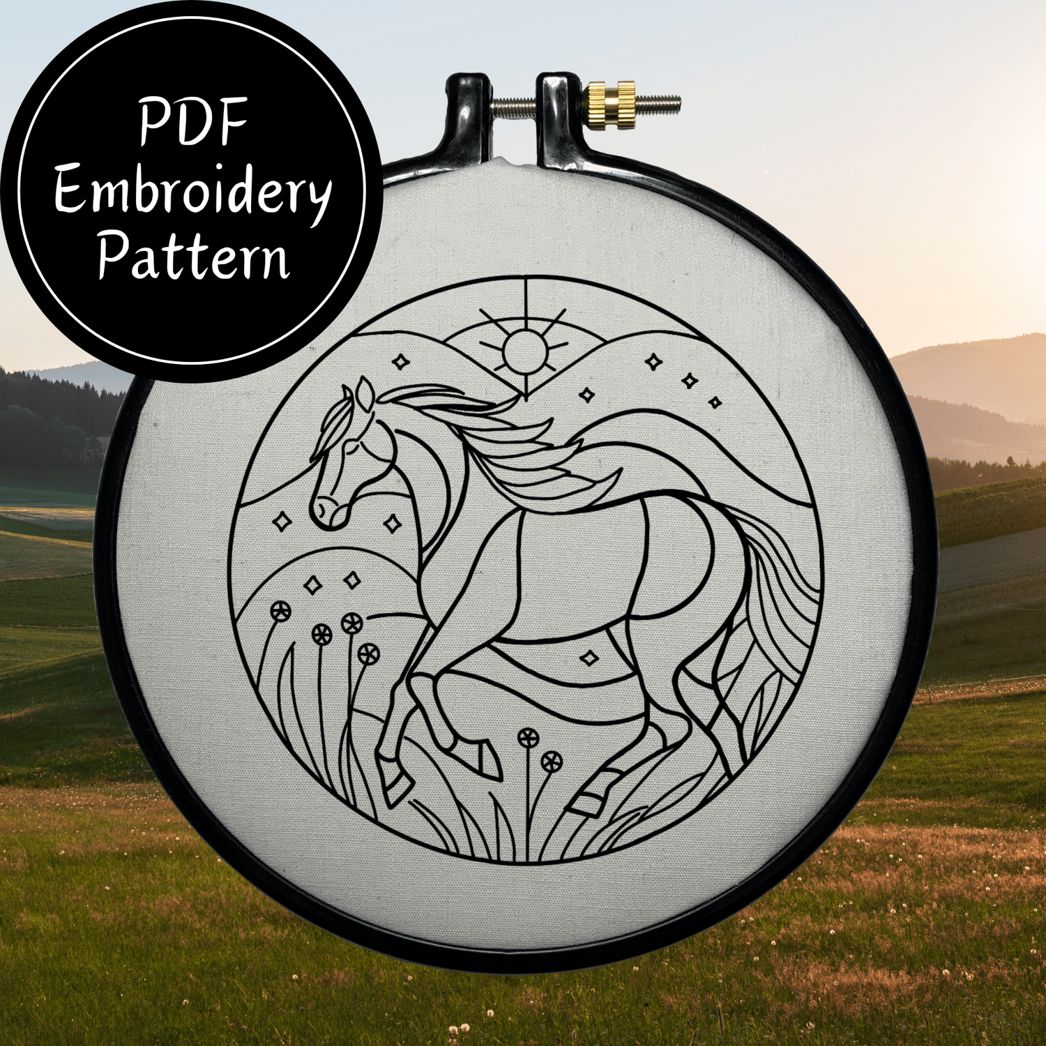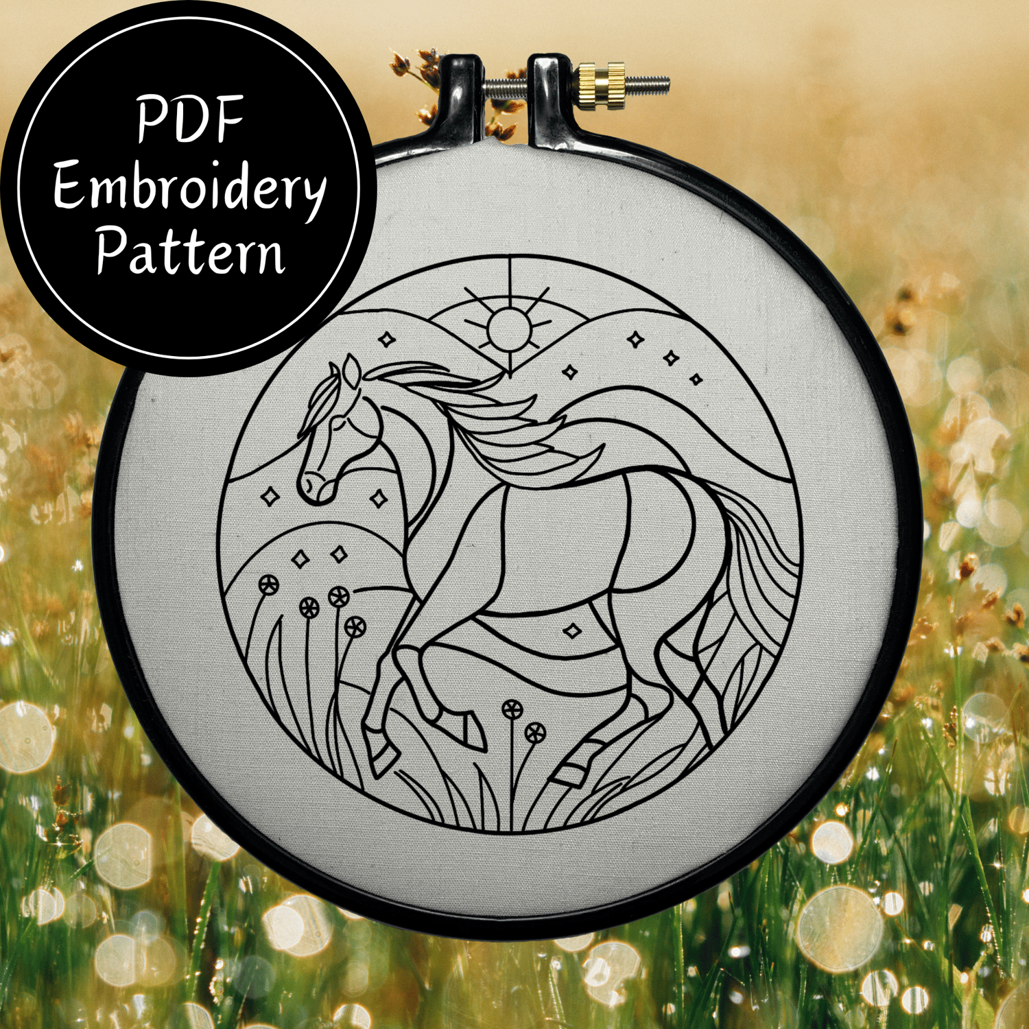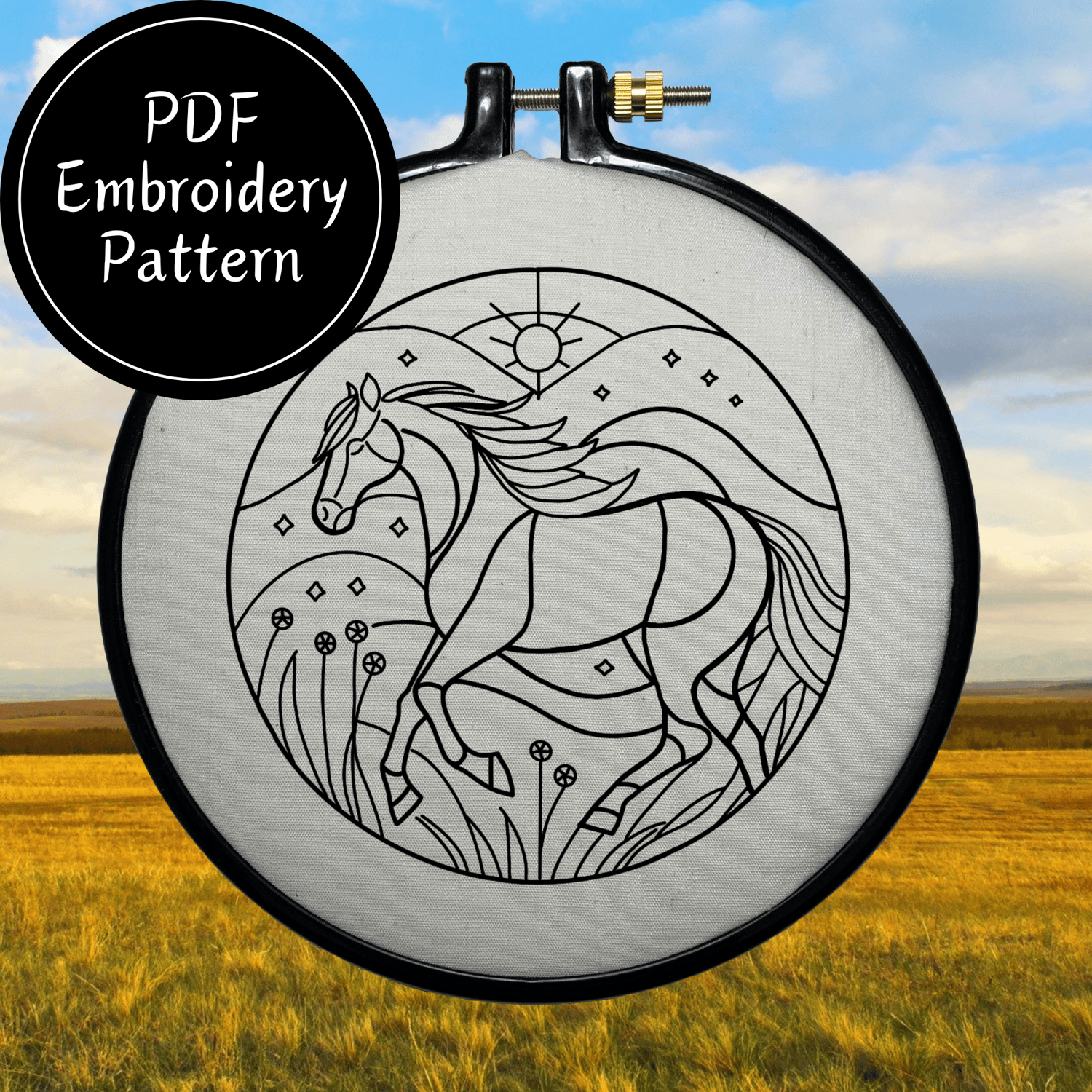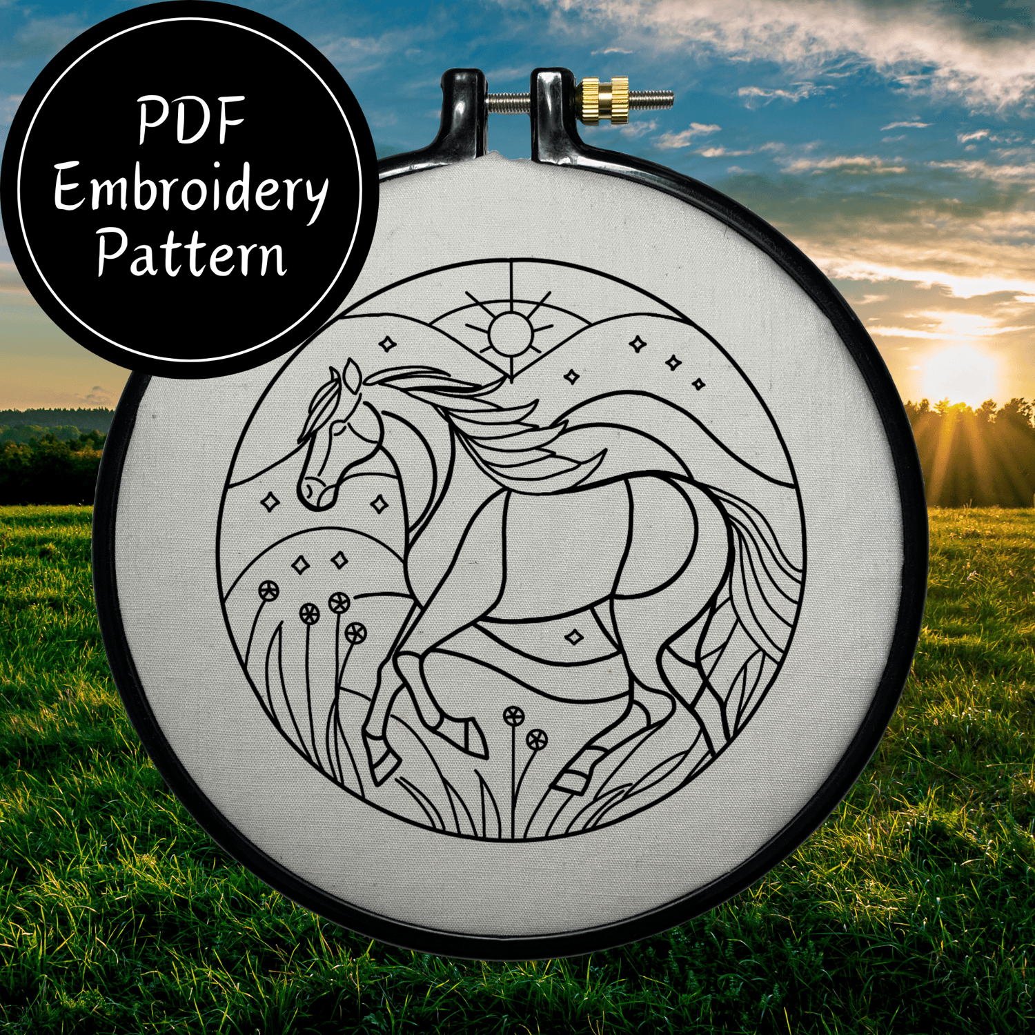 Horse In Flower Field Hand Embroidery Pattern DIY Embroidery